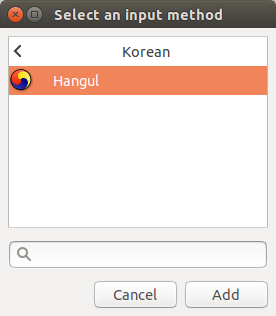 20. 아래의 그림과 같이 Hangul이 출력됩니다. 여기서 Add 버튼을 클릭합니다.