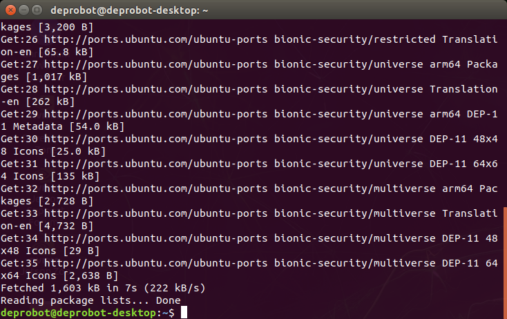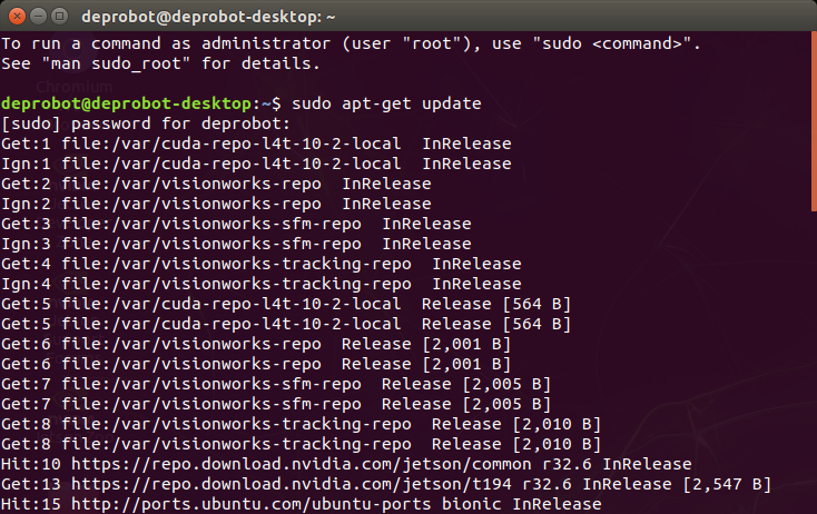 10. 관리자 권한에서 업데이트 목록을 읽어오는 명령어를 실행합니다. sudo는 super user 권한을 얻기 위한 명령어입니다.