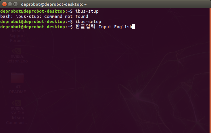 17. 이 상태에서 터미널을 띄우고 ibus-setup 명령을 실행합니다.