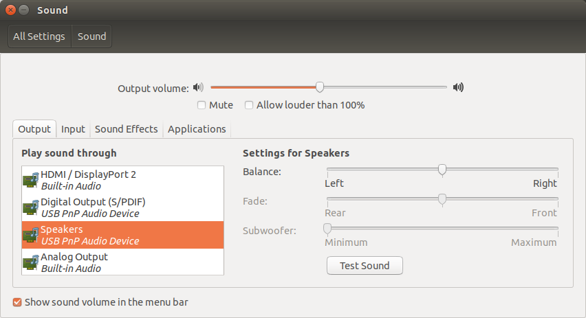 8. 좌측의 장치 리스트 중에서 Speakers-USB Pnp Audio Device를 선택합니다.