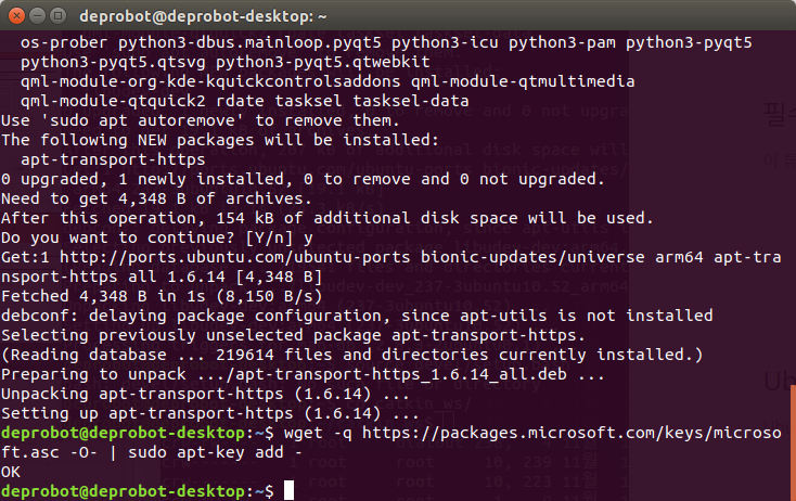 1. Ubuntu 18.04에 Visual Studio Code를 설치한다. 먼저 아래와 같이 패키지 인덱스를 업데이트 합니다.