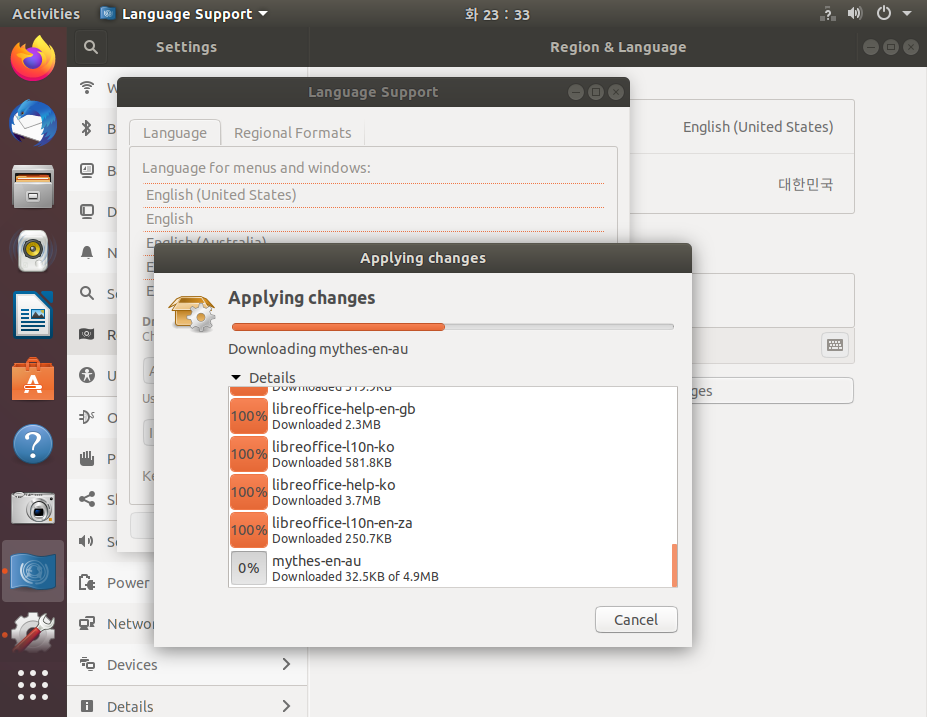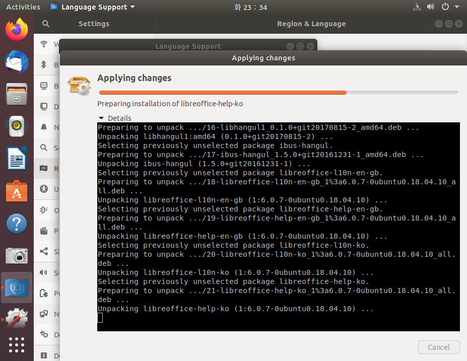 6. 언어지원 팩의 설치가 진행됩니다.