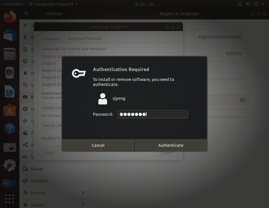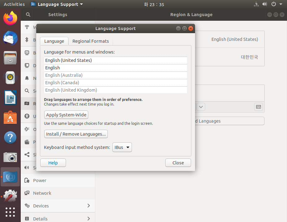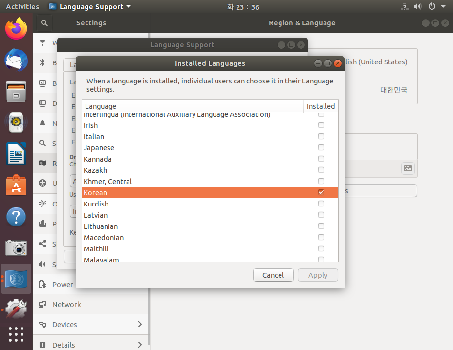 10."Install/ Remove Languages..." 버튼을 클릭하여 한글이 설치되었는지 확인합니다.