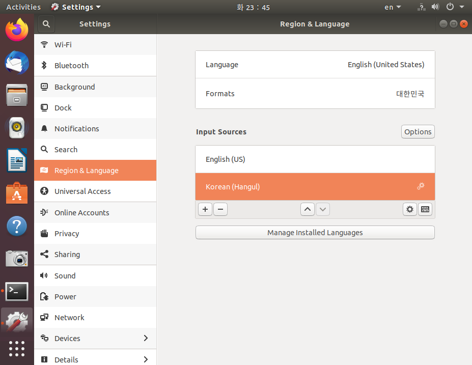 | Ubuntu 18.04 : 한글 입력 설정 #1 (0) | 2021.12.29 |