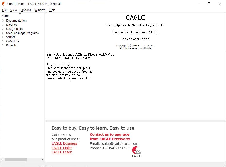 EAGLE MCAD는 크게 Free, Standard, Premium 3가지 버전으로 제공되며 , Free 버전은 무료입니다.