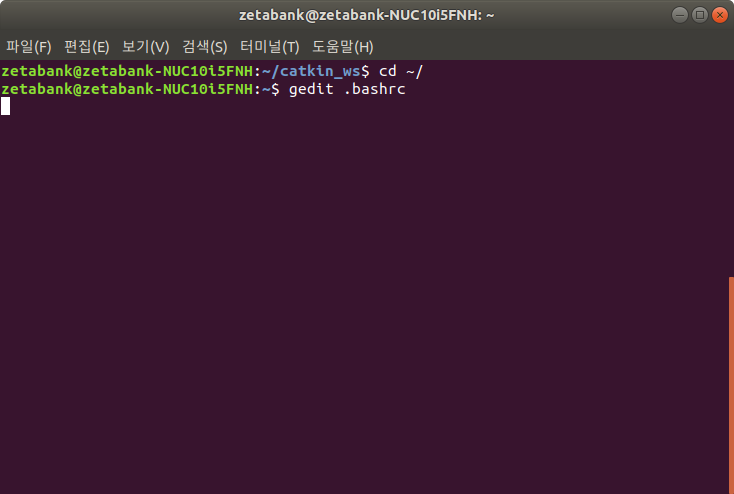 내용 수정이 완료되었으면 저장을 하고 종료합니다. 터미널을 새롭게 실행하고 정상적인 동작여부를 확인합니다.