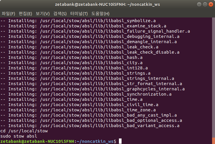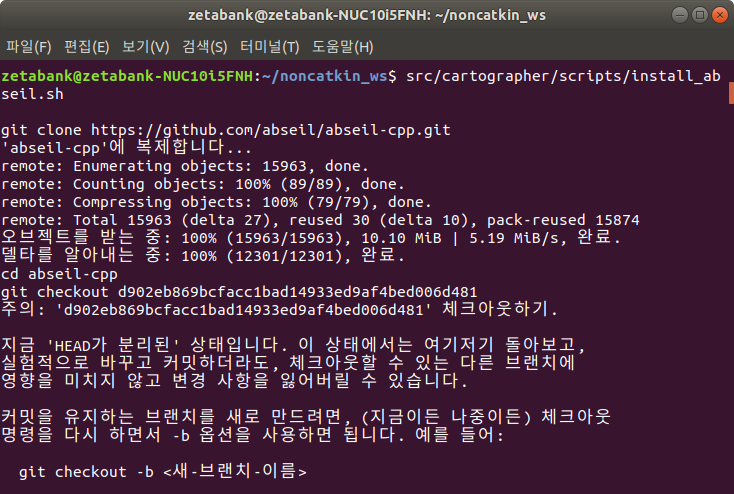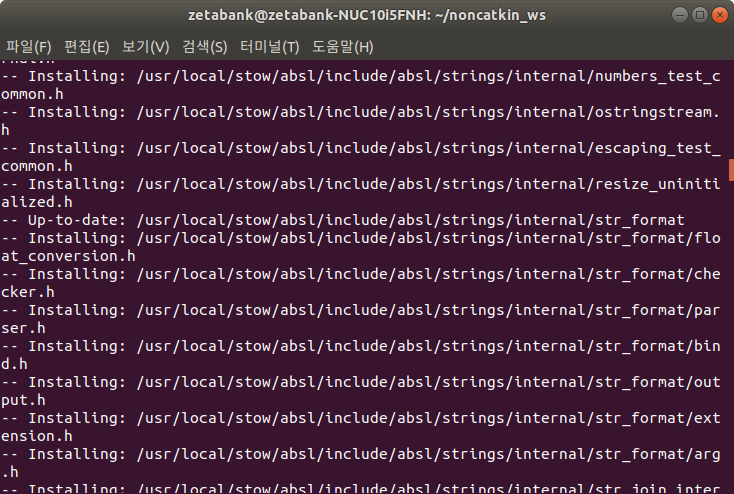 9. Cartographer는 abseil-cpp를 사용합니다. 따라서 아래의 명려어를 실행하여 수동으로 설치해 줍니다.