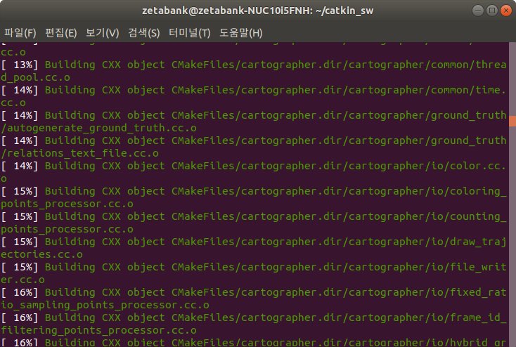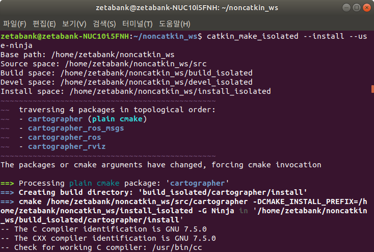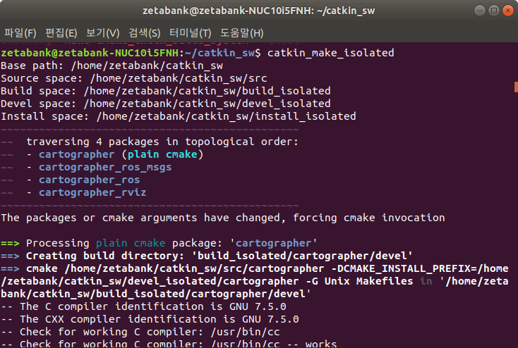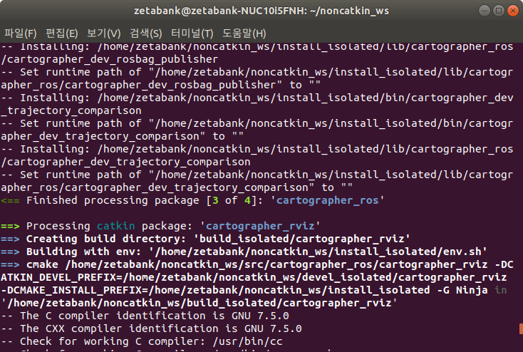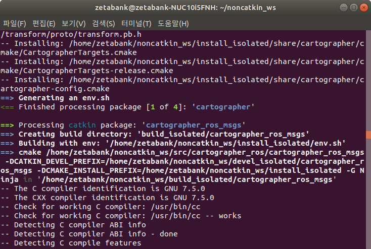 15. catkin_ws로 이동하여 catkin_make_isolated 명령을 실행하여 컴파일을 진행합니다.
