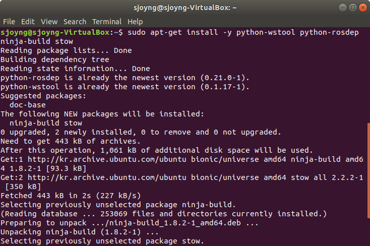 sudo apt-get install -y python-wstool python-rosdep ninja-build stow