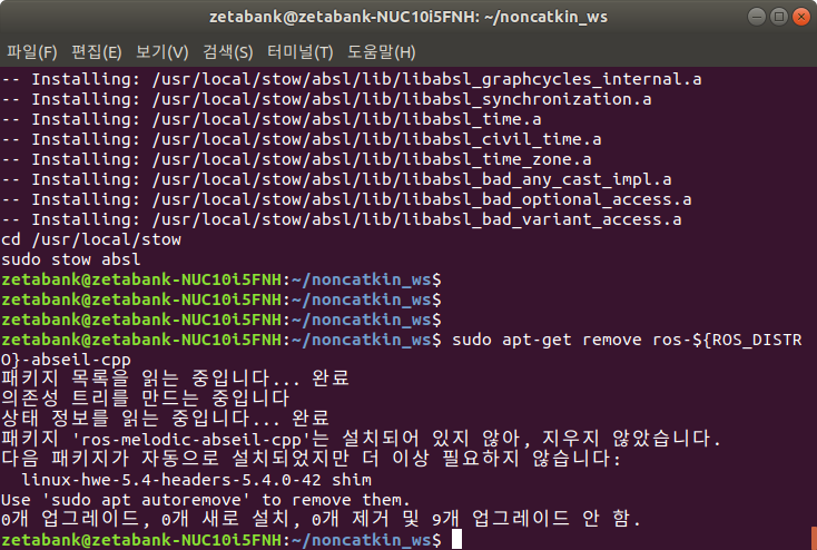 10. 버전간 충돌을 피하기 위해 ROS abseil-cpp는 언인스톨해야 합니다.