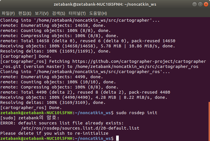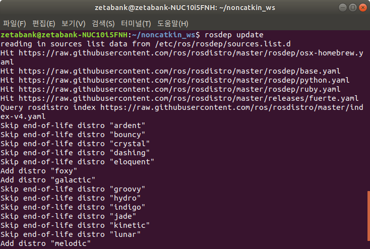 7. rosdep의 업데이트를 실행합니다.