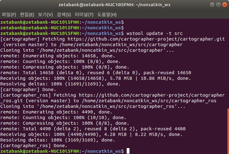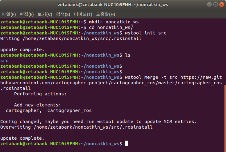 4. wstool을 이용하여 Cartographer 소스를 다운로드 받을 위치를 지정합니다.