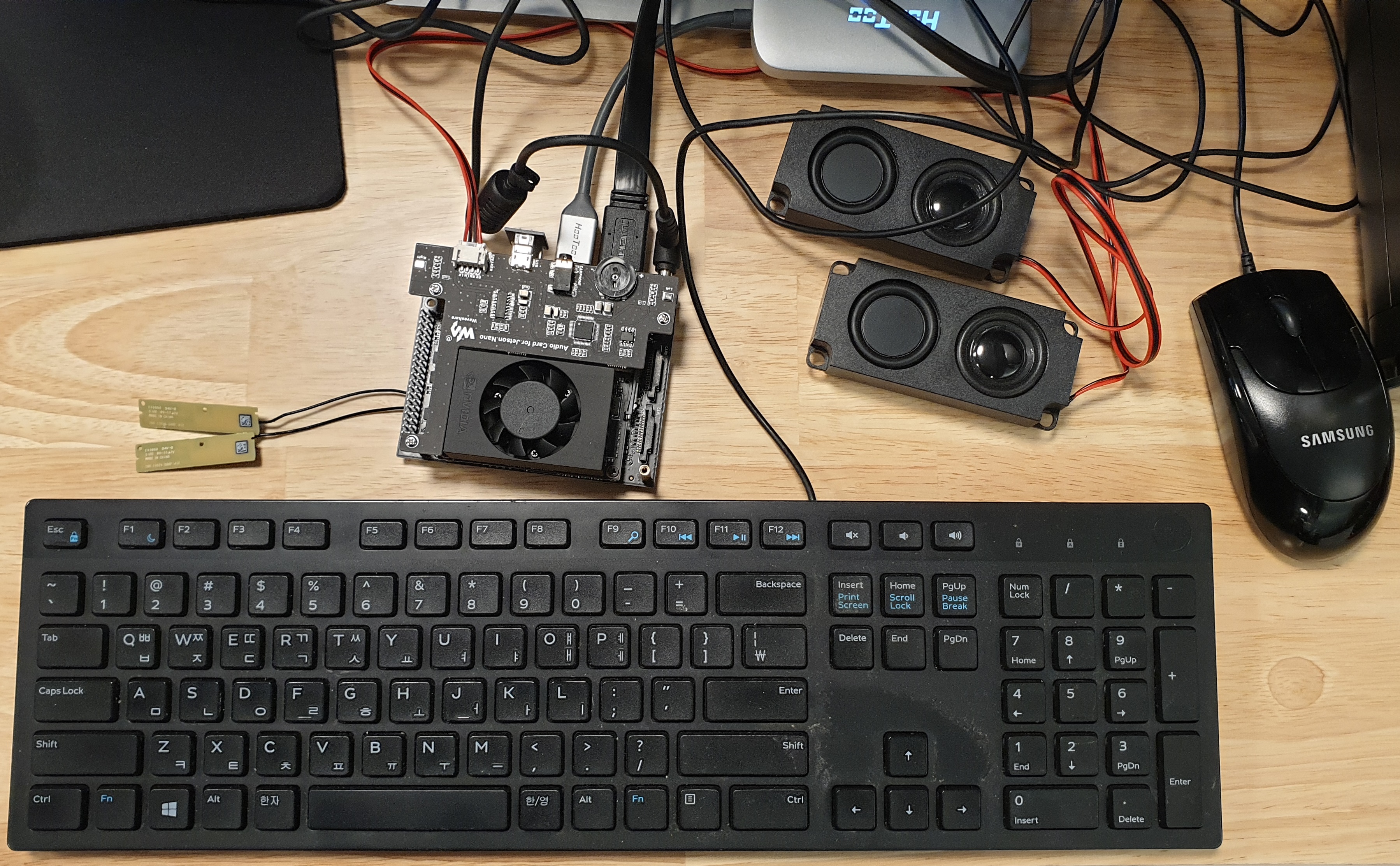 23. Xavier 보드에 HDMI 케이블을 이용하여 모니터를 연결하고, 키보드와 마우스를 USB 커넥터에 연결하여 JetPack 설치를 준비합니다.