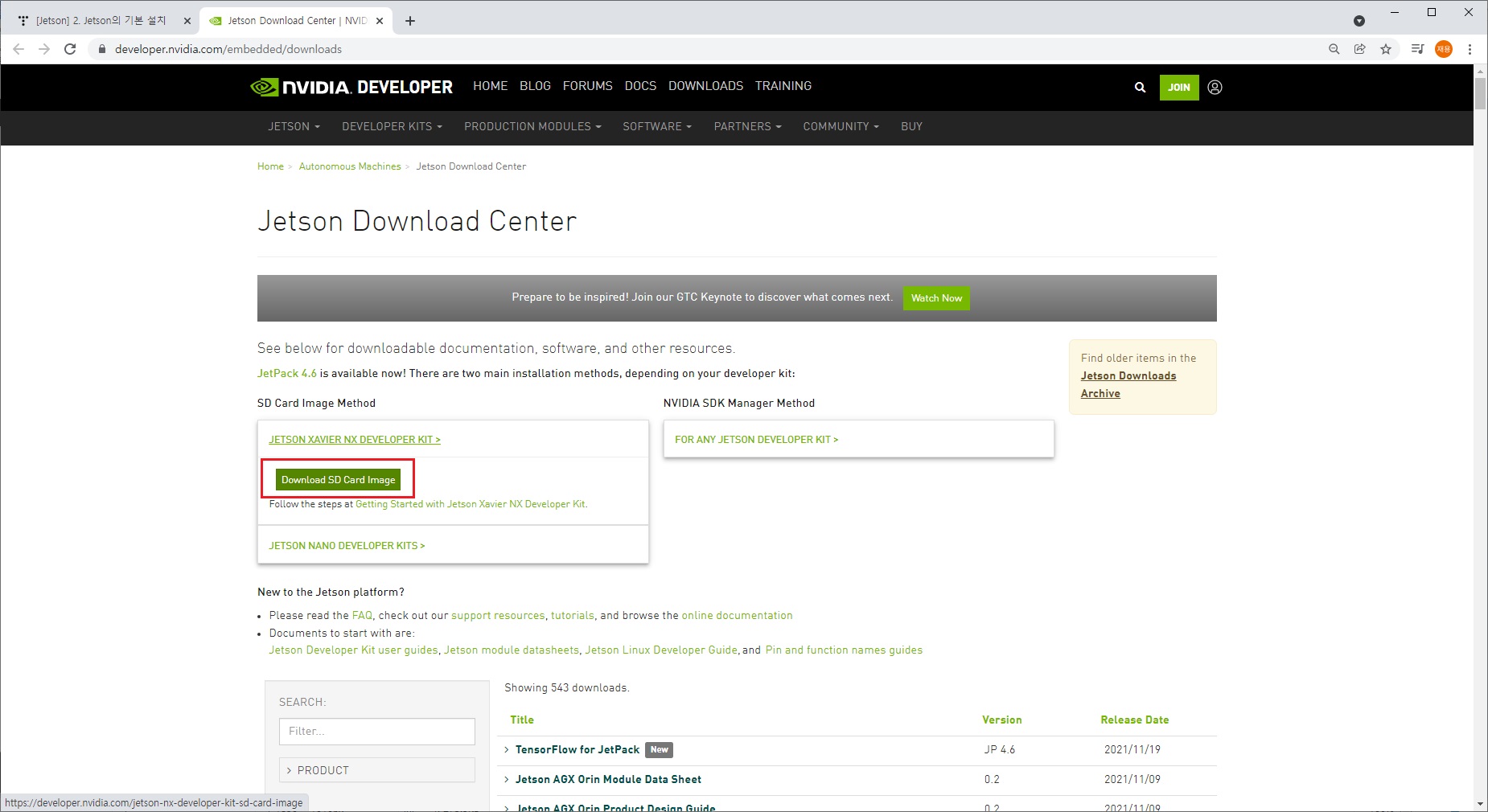11. Jetson Xavier NX 보드의 OS를 설치하기 위해 Nvidia Download Center에서 JetPack을 다운로드 합니다.