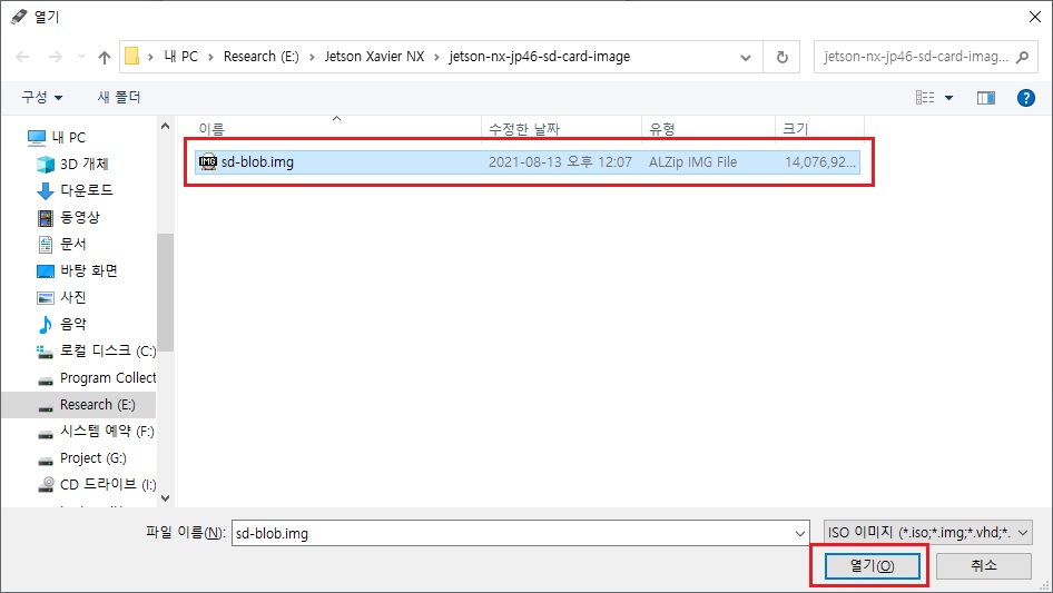 17. 다운로드하여 압축을 해제하고 얻은 sd-blob.img 이미지 파일을 선택합니다.