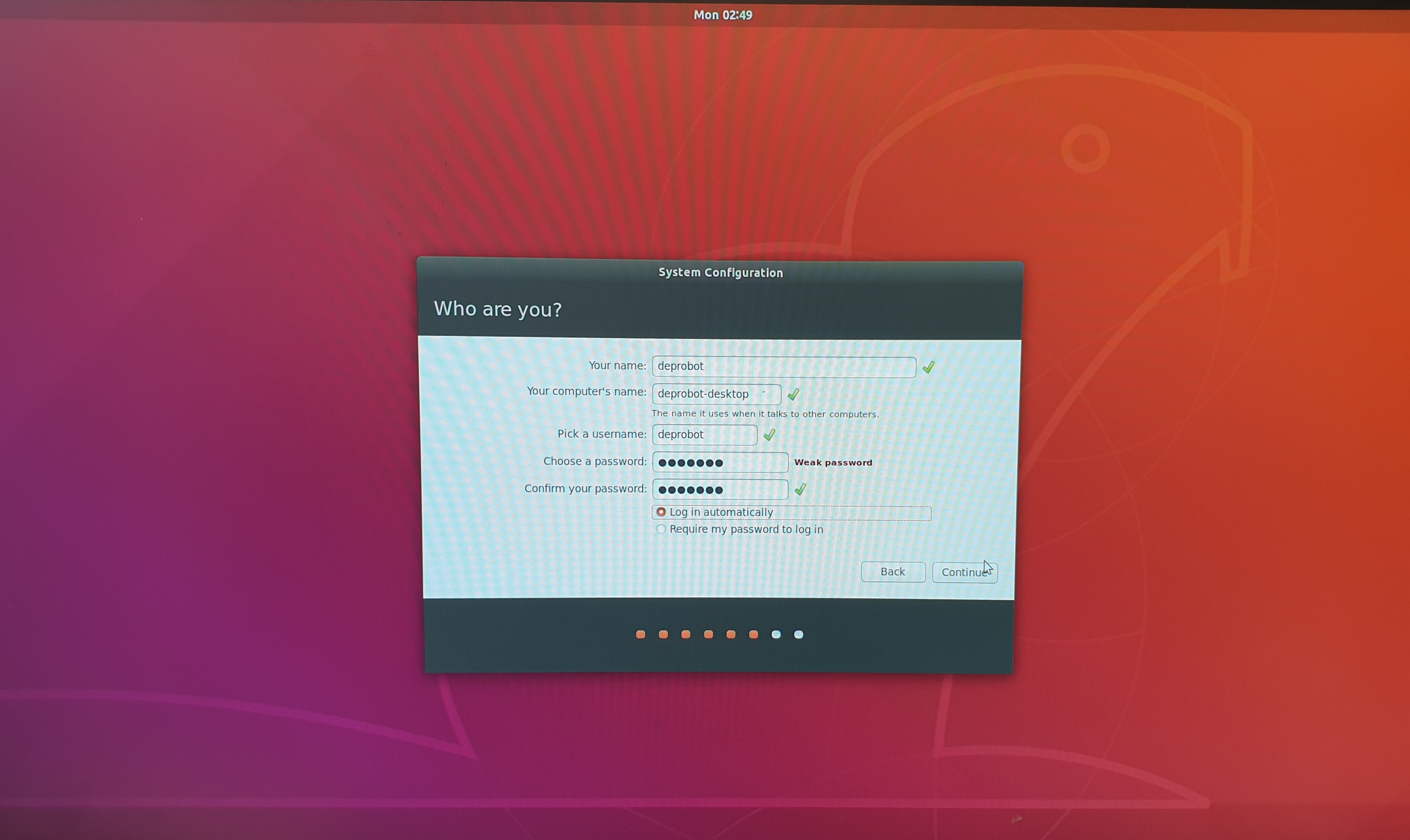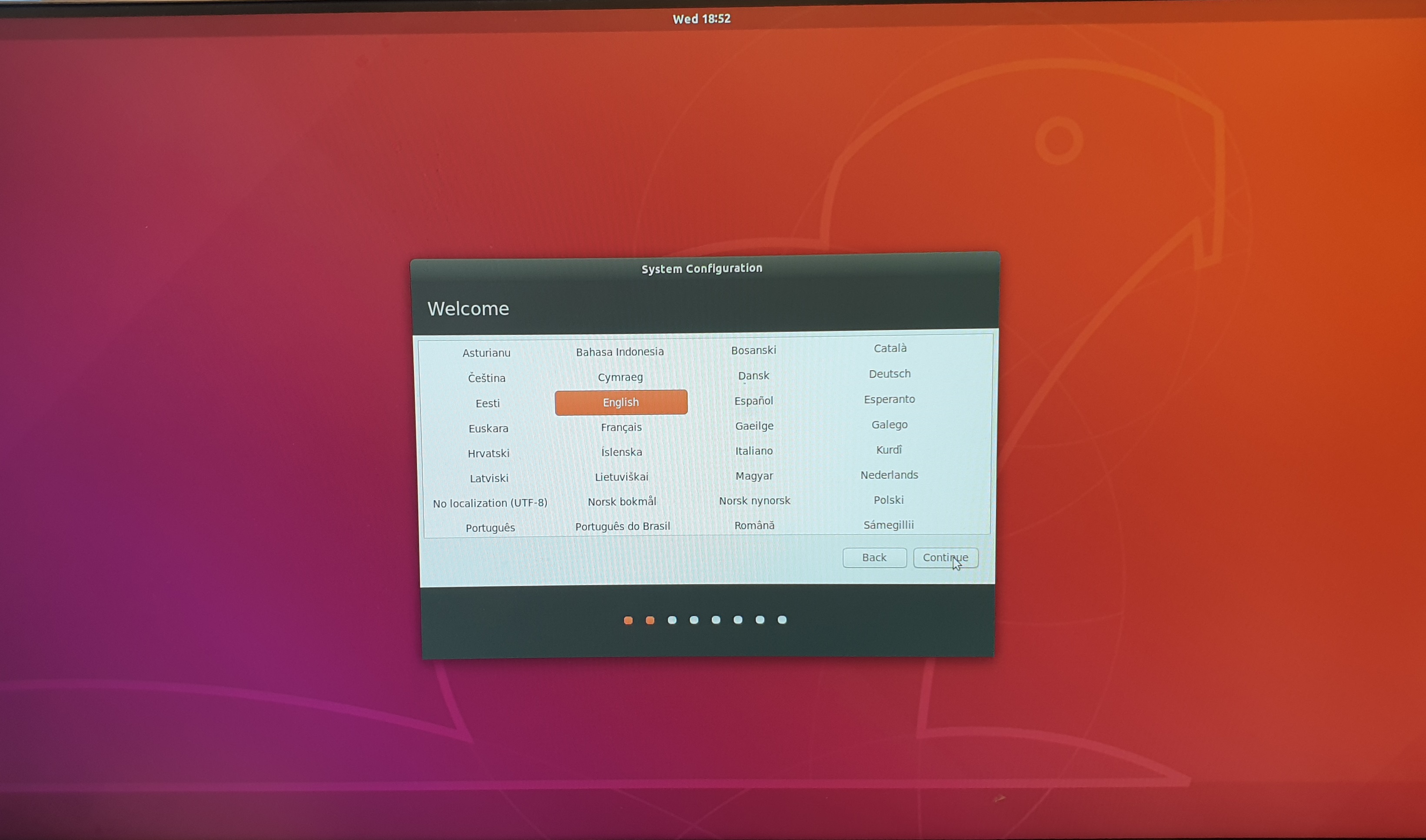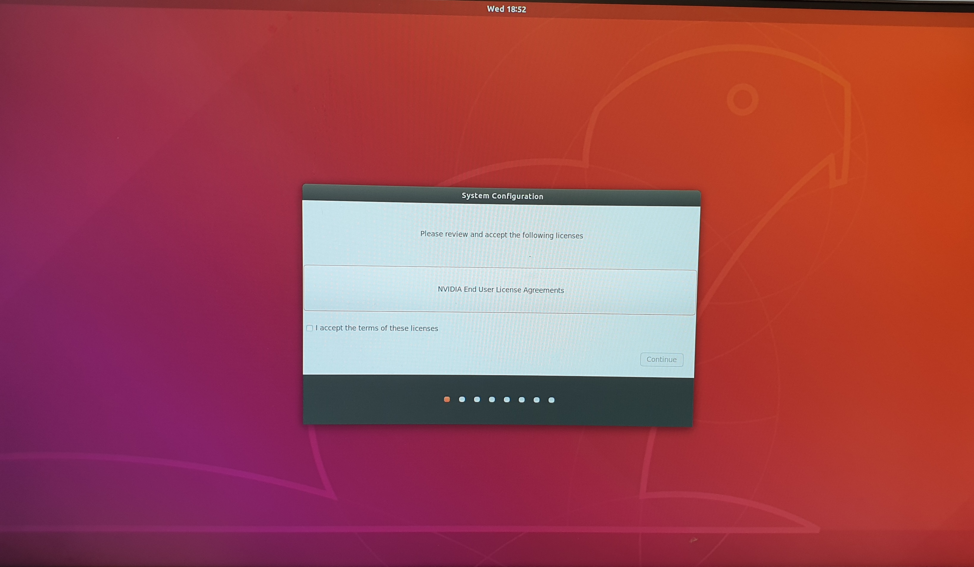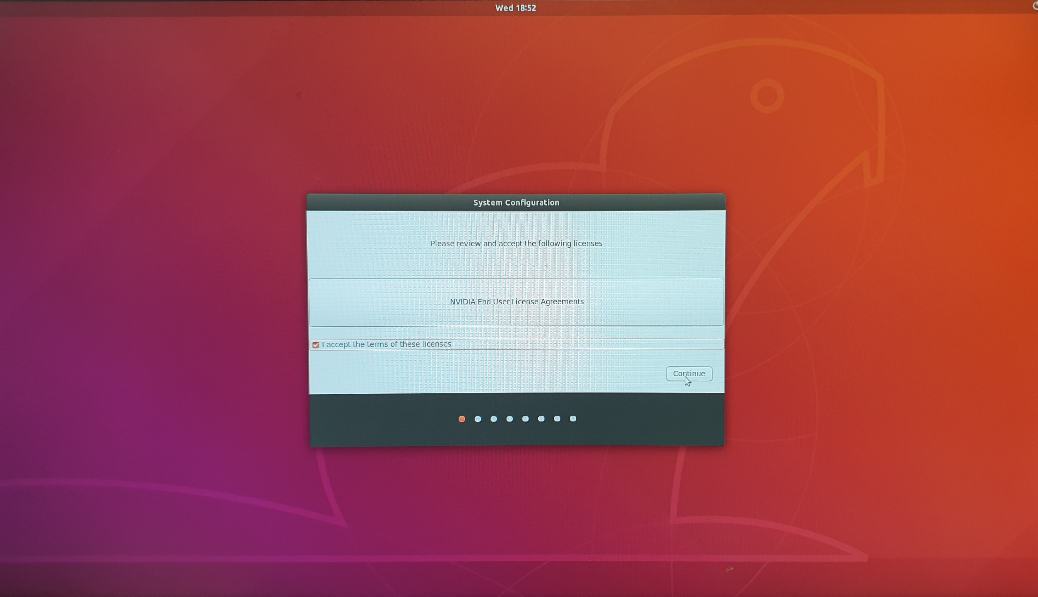 27. 우분투 라이센스에 동의하고 continue 버튼을 클릭합니다.