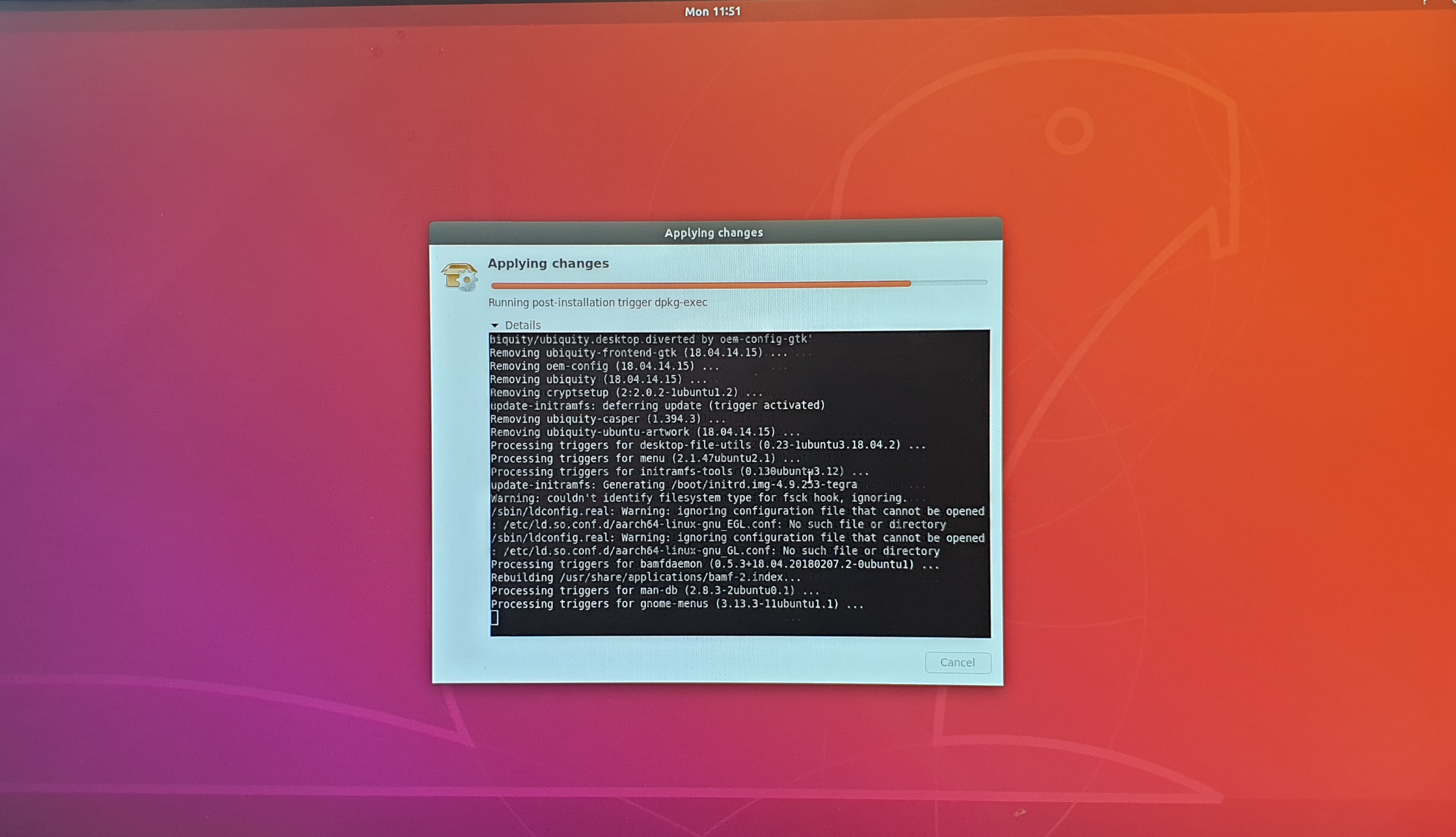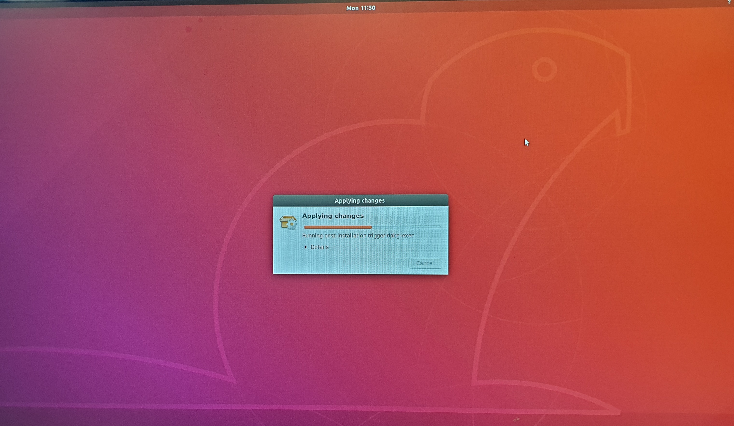 41. 아래의 그림은 설정이 완료되고 부팅된 Ubuntu 18.04의 최초 화면입니다.