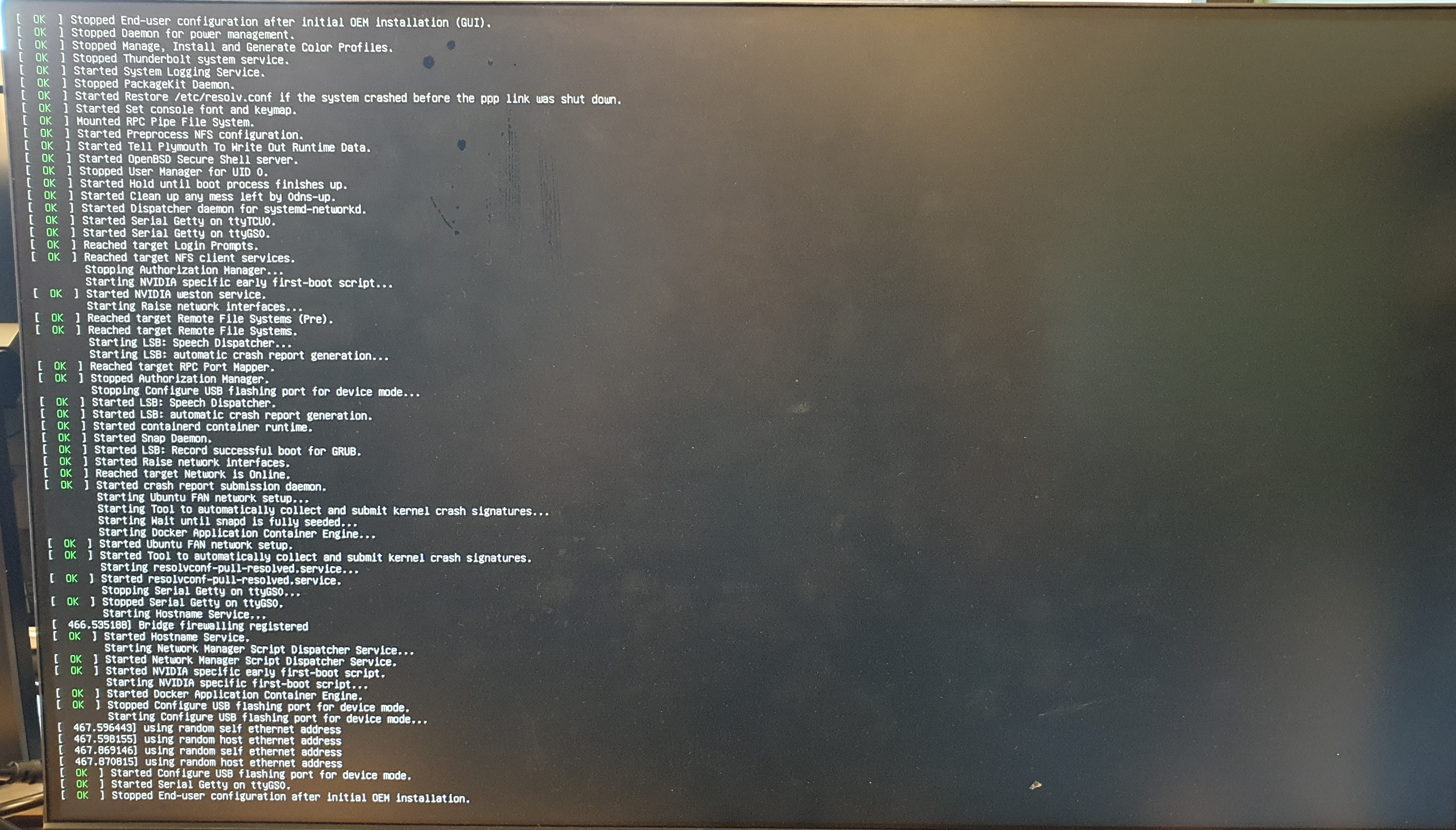 24. Xavier 보드에 전원을 연결하면 화면상에 먼저 Nvidia 로고가 출력됩니다.