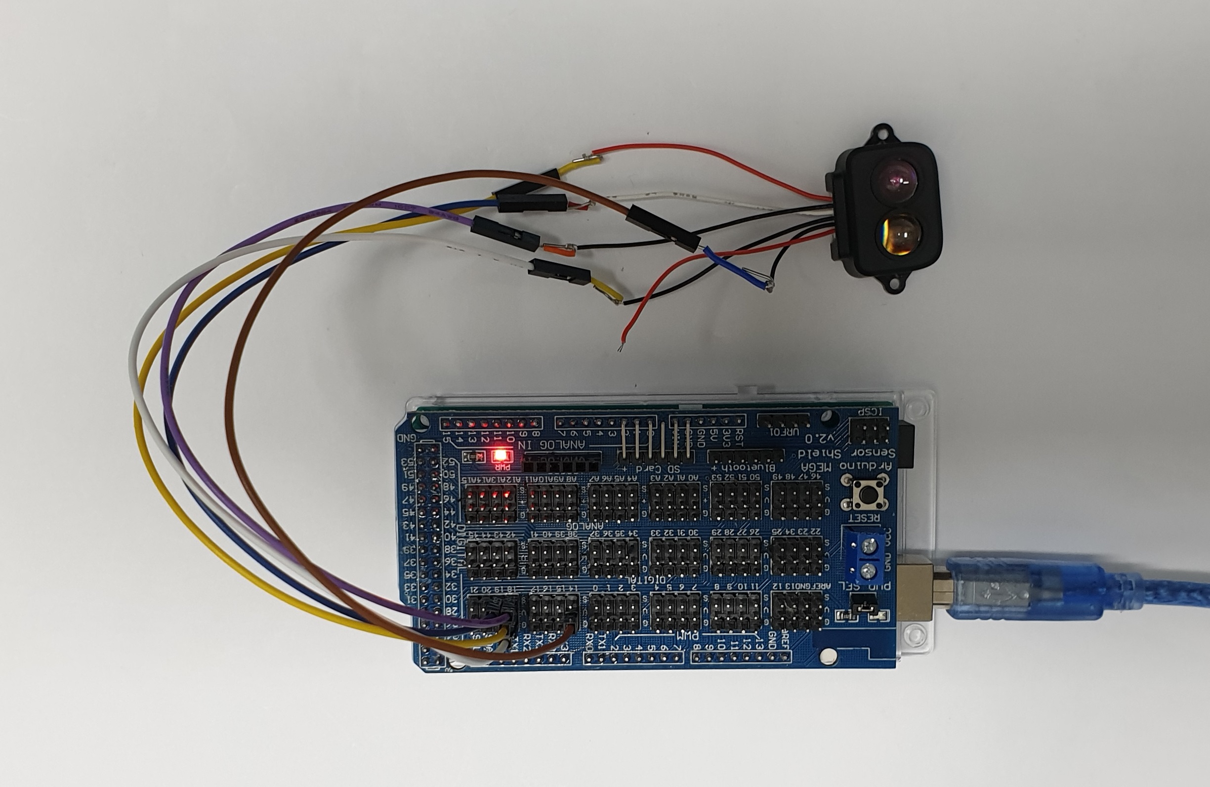 2. 아래의 그림과 같이 Arduino Mega Sensor Shield 보드의 UART 포트에 연결합니다.