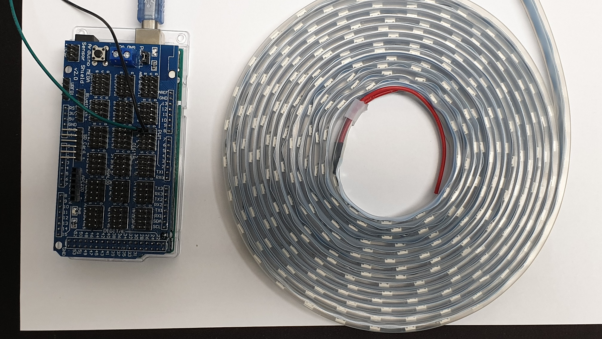 2. 아래의 그림과 같이 Arduino Mega Sensor Shield 보드의 PWM 포트에 연결합니다.