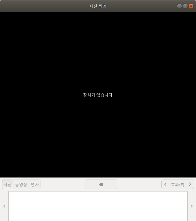현재 시스템에 마운트 되어 있는 카메라가 존재하지 않아 동작하지 않았습니다. 아래의 그림처럼 "장치가 없습니다"라는 문구만 출력됩니다.