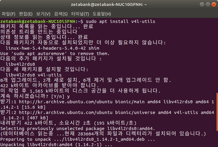 11. Video4Linux(V4L) 유틸리티를 설치합니다.