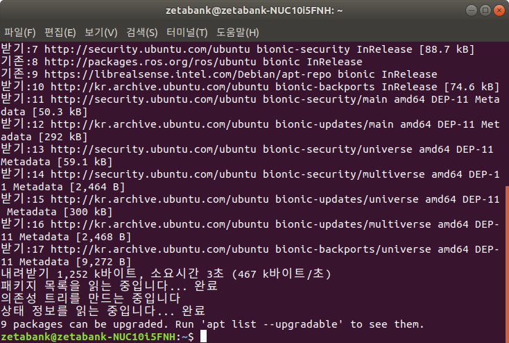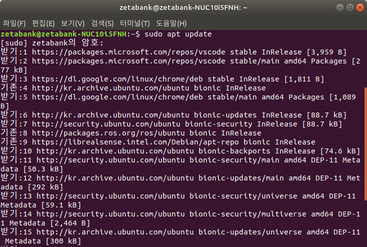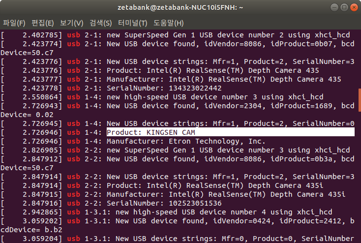 1. Intel NUC PC에 Ubuntu 18.04를 설치하고 리얼센스와 웹캠을 연결하였습니다. 먼저 리얼센스 카메라를 설치하고 동작을 확인하였습니다. 아래의 링크 문서를 참조하세요!