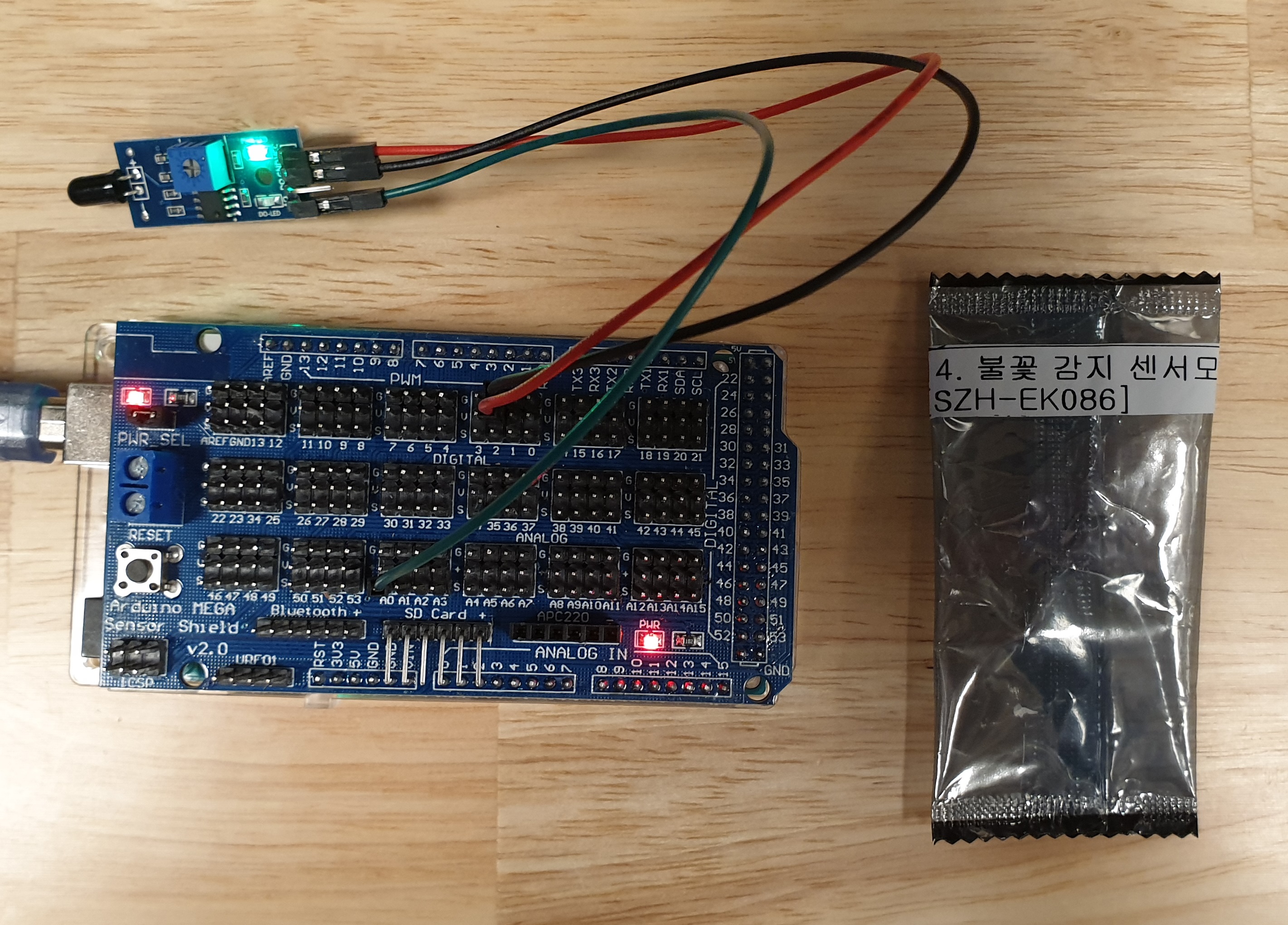 3. 스케치에서 불꽃센서 제품의 데이터를 취득할 수 있도록 프로그램을 작성합니다.