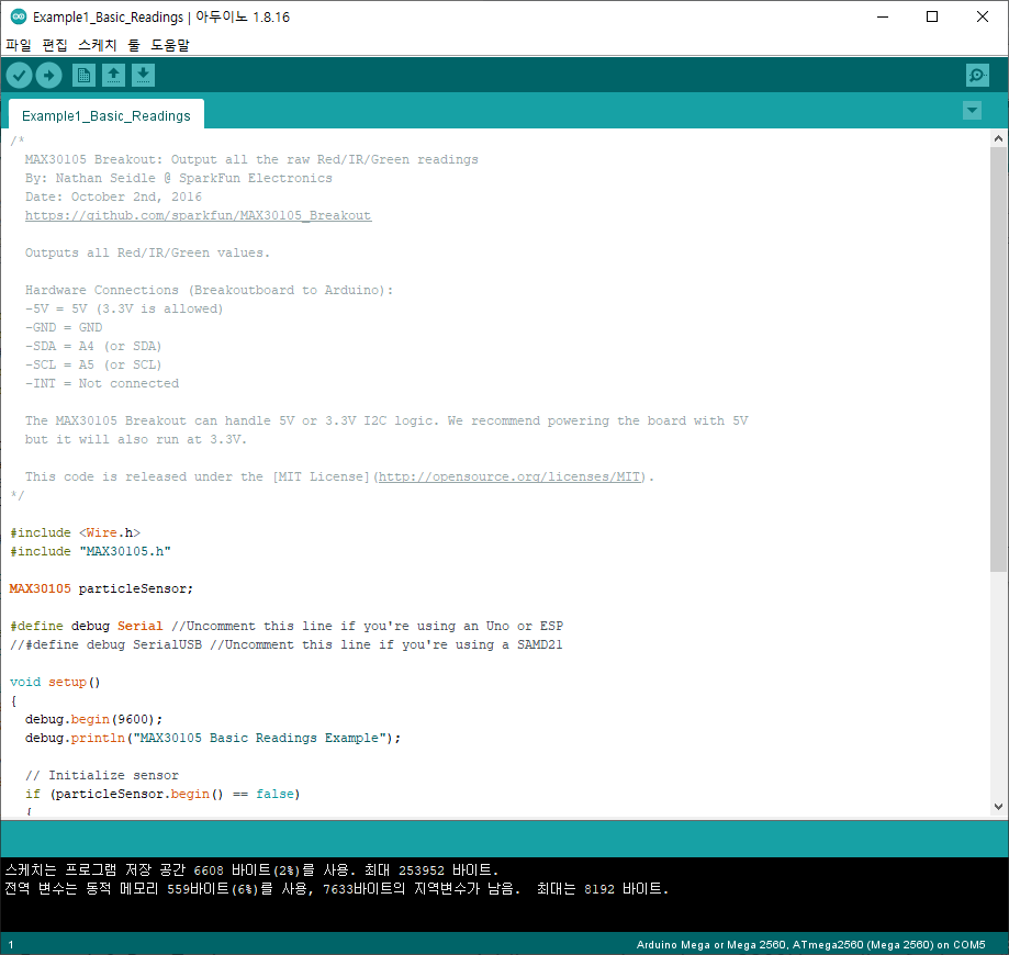 MAXIM MAX30105를 사용하여 연기, 입자 검출 데이터를 I2C로 출력하는 초소형 광 센서 모듈