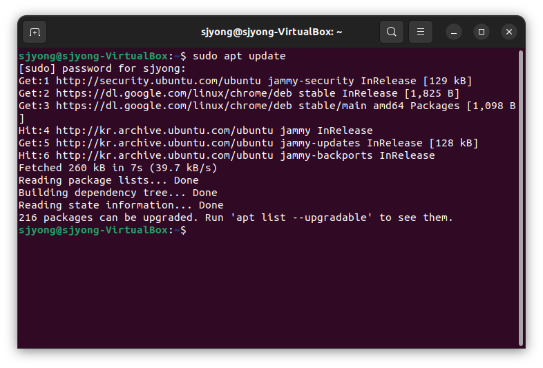 1. 시스템 업데이트 명령어를 실행합니다.