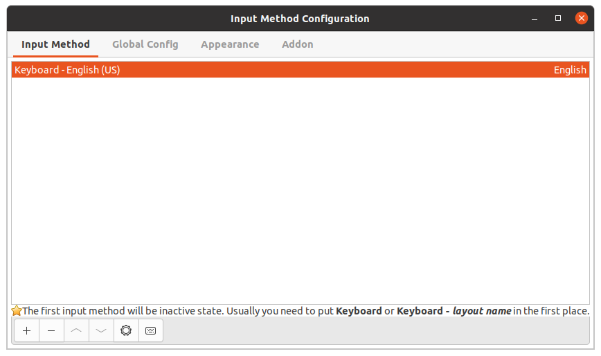 6. 다음과 같은 "Input Method Configuration" 창이 나타납니다.