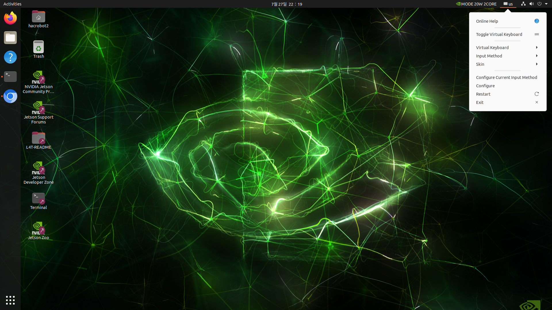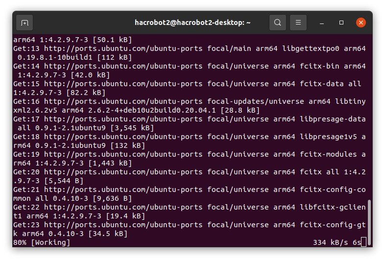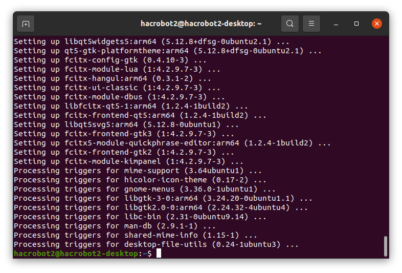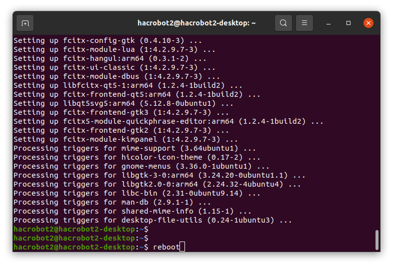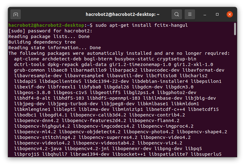 1. JetPack 5.1.3에서 IBus 한글 입력 방식은 정상적으로 설치되지 않습니다. 따라서 fcitx 방식을 사용해야 합니다. 먼저 아래와 같은 명령어를 입력하여 fcitx 한글 입력 패키지를 설치합니다.