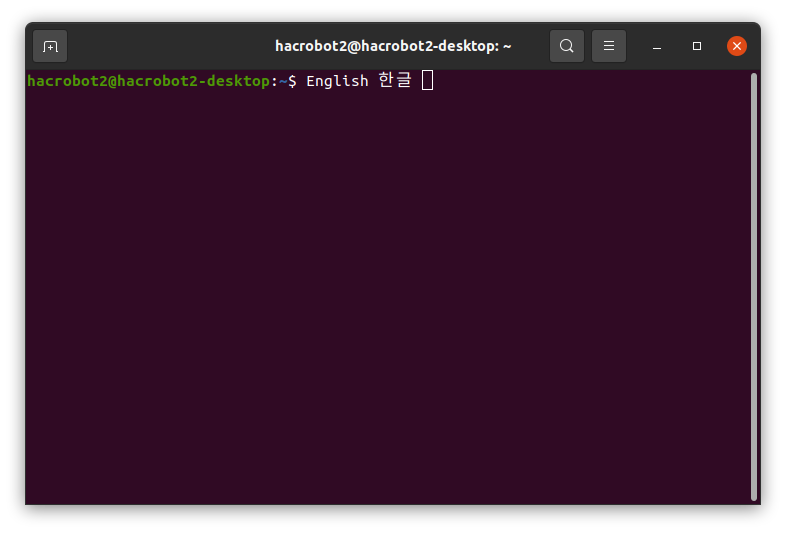 10. 터미널을 실행한 후 아래의 그림과 같이 영문과 한글이 정상적으로 입력되는지 확인합니다. 영한 전환은 위에서 정의한 Shift+Space 조합키 입니다.