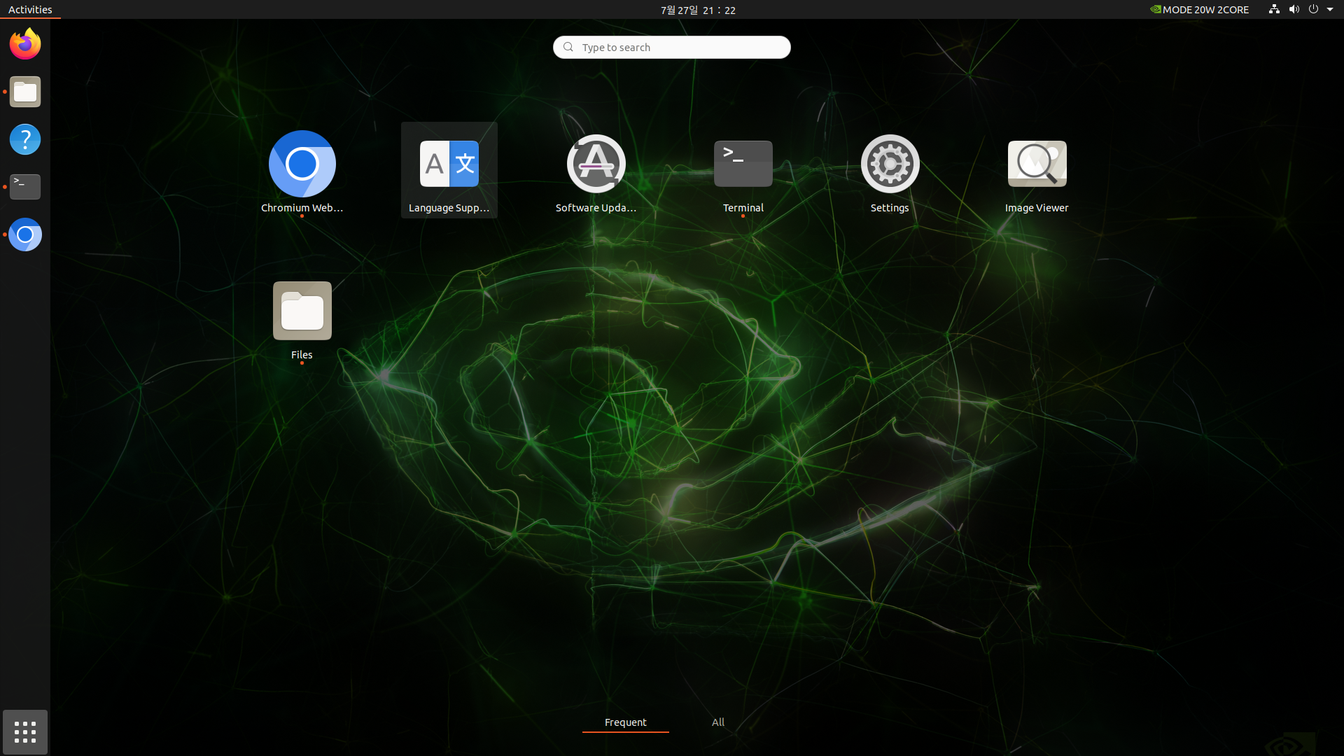 2. 설치가 완료되면 좌측 하단의 "Show Application"에서 "Language Support" 아이콘을 클릭하여 실행합니다.