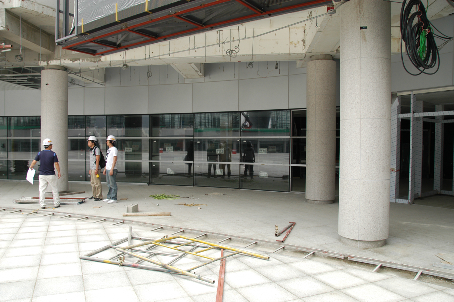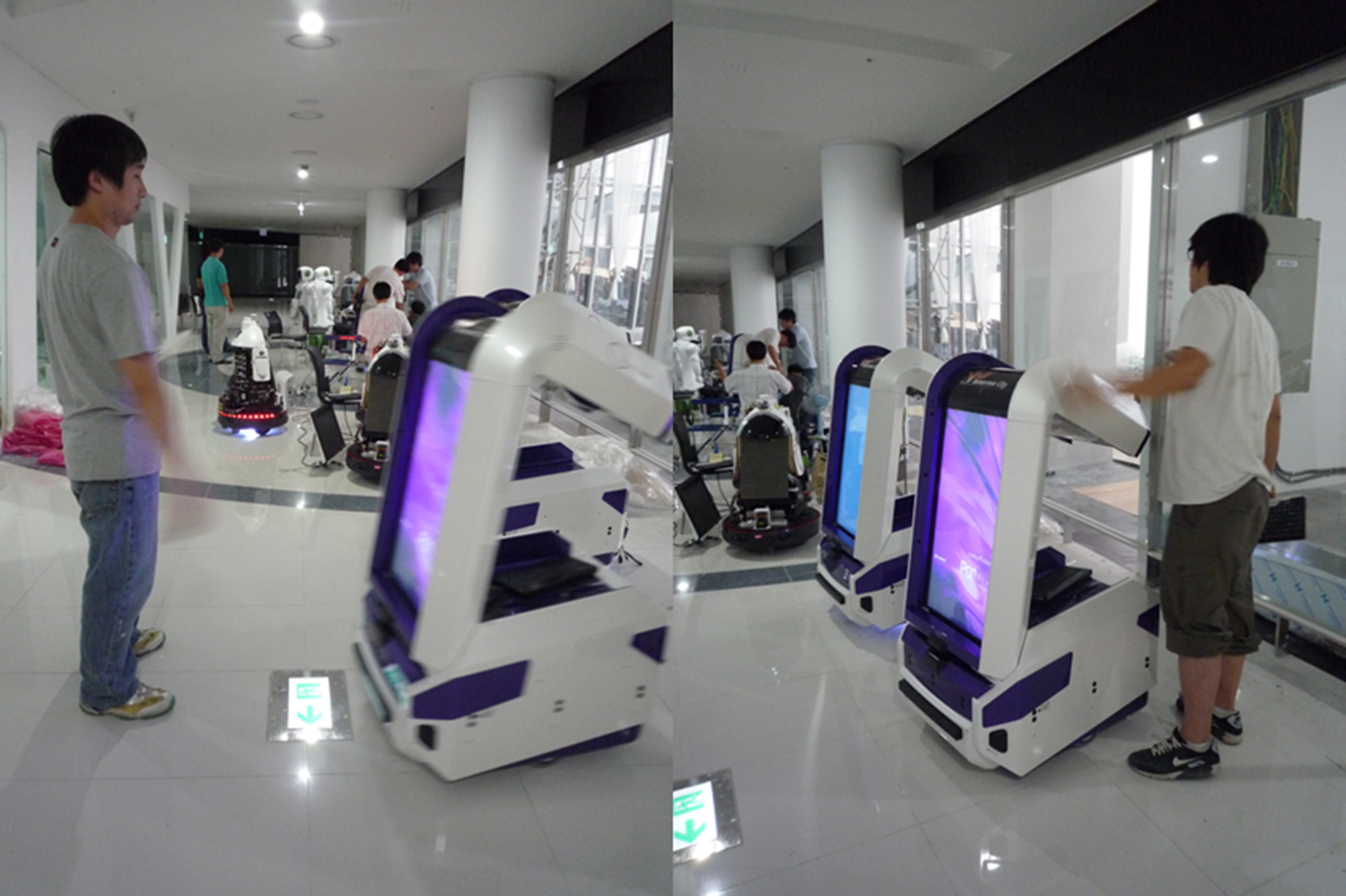 건물이 아직 완공되지 않은 상태에서 로봇 회사들이 서비스 일정 때문에 미리 가서 작업하고 있음