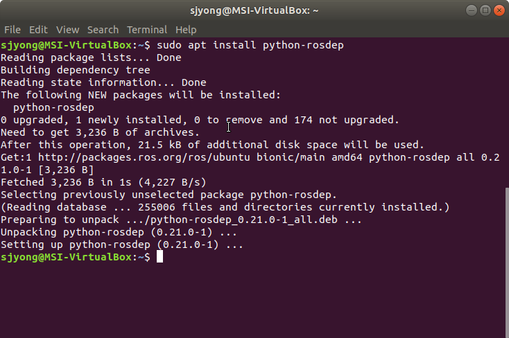 아래의 명령어를 사용하여 rosdep를 설치합니다.
