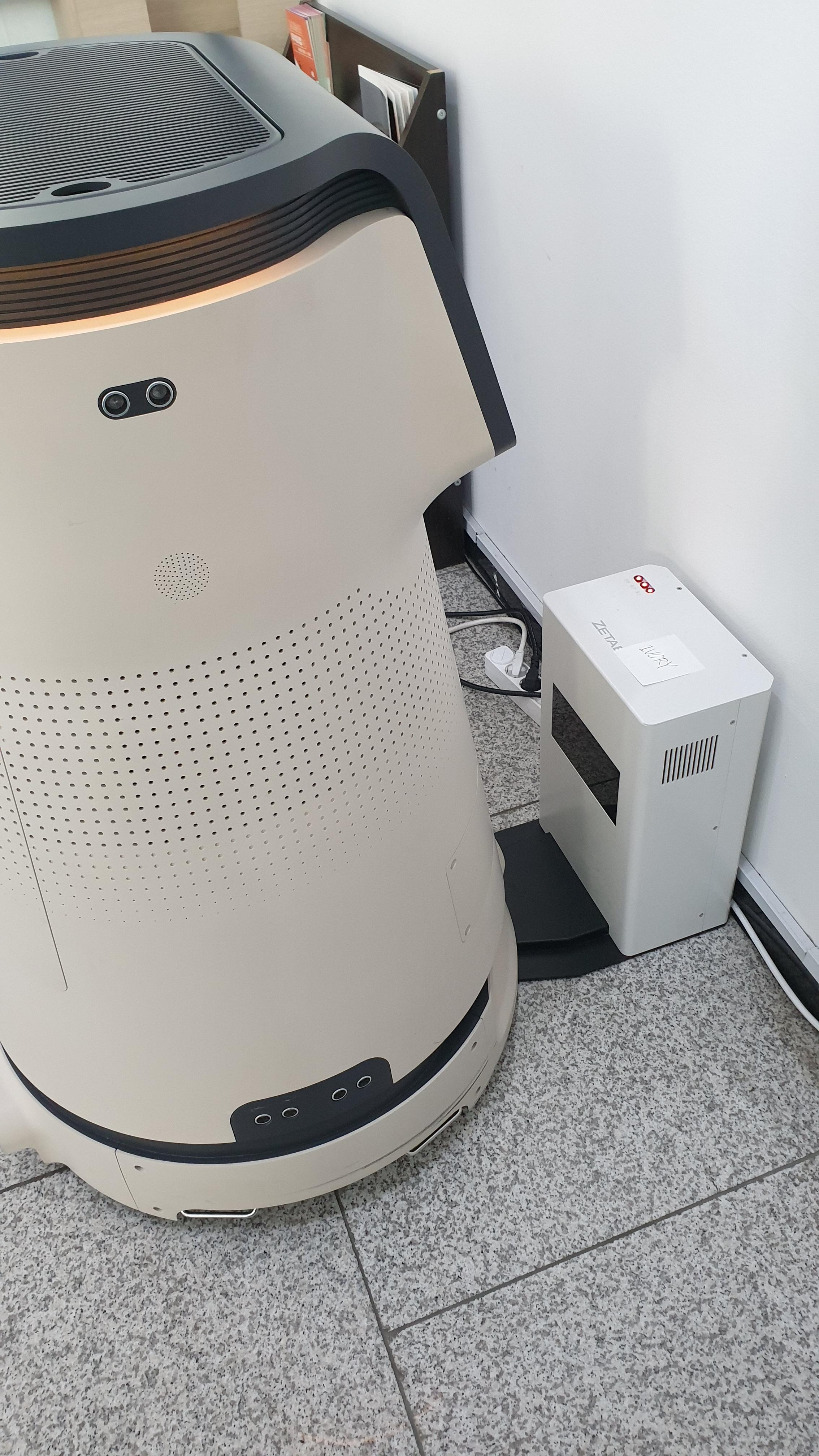 로봇은 서비스를 수행하다가 배터리가 소모되어 더이상 주행을 하지 못할 경우 자동으로 충전기에 안착하여 충전을 진행하고 완충되면 다시 서비스를 수행하게 됩니다. 또한 내부에 스케쥴러를 장착하여 자동으로 특정 시간에 서비스를 시작하고 특정 시간이 되면 서비스를 종료하게 됩니다.
