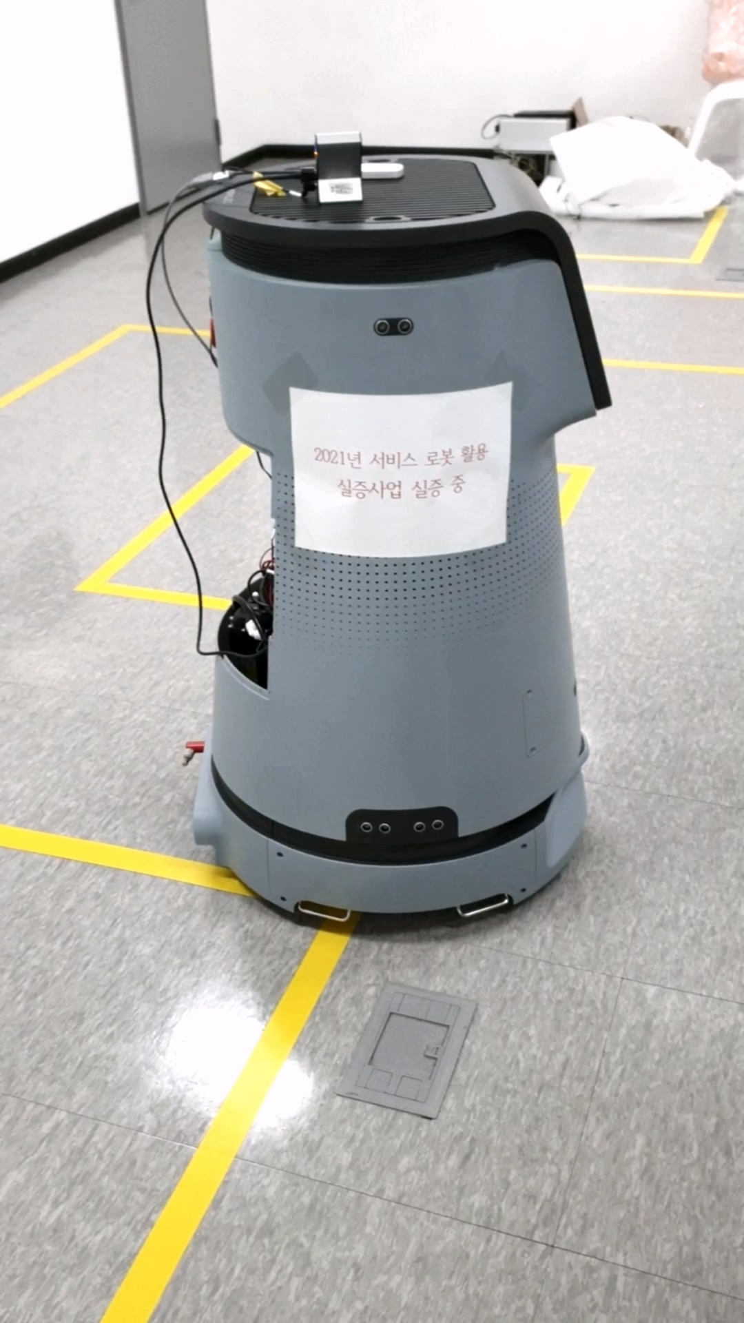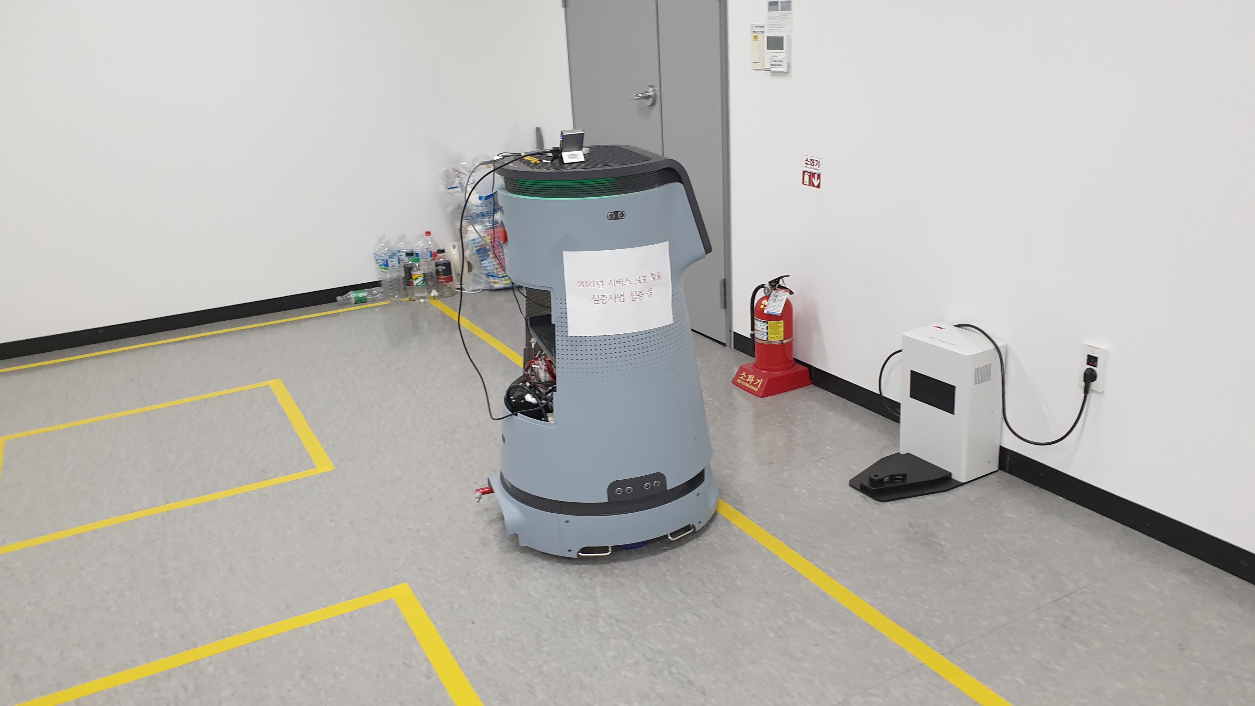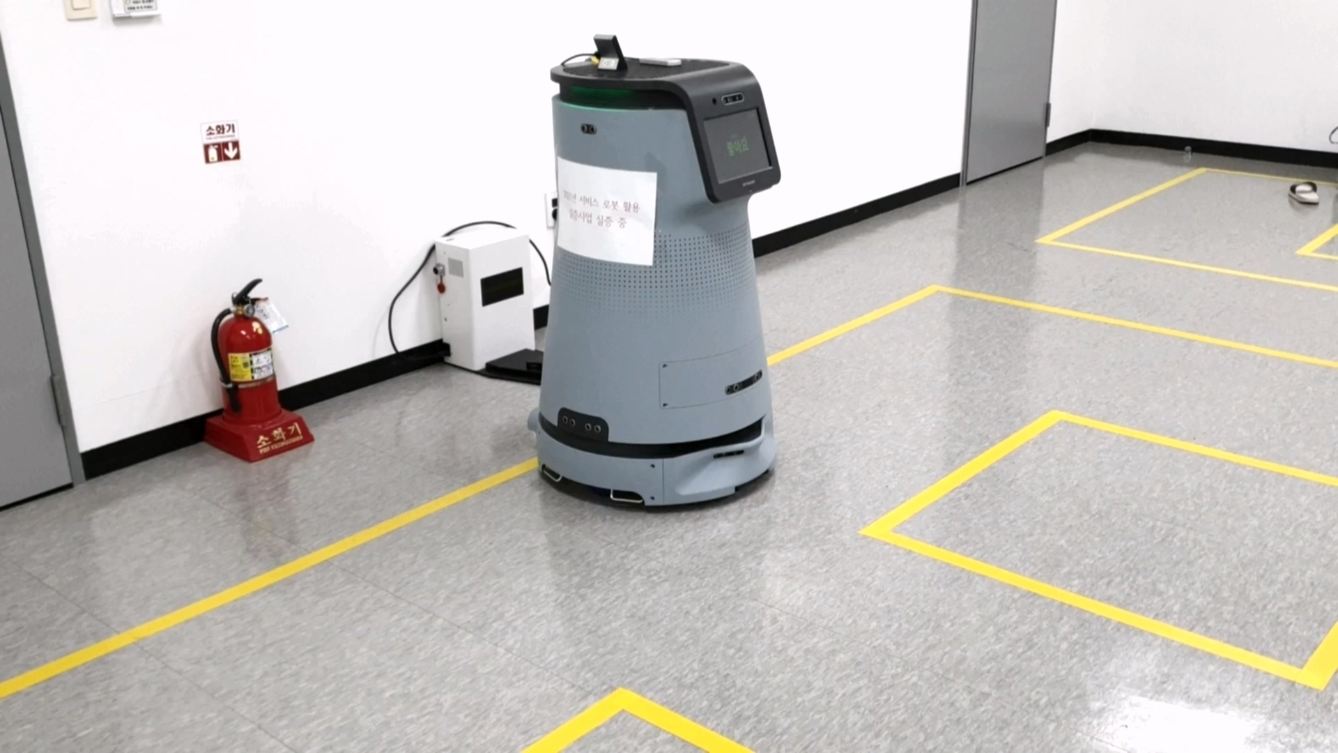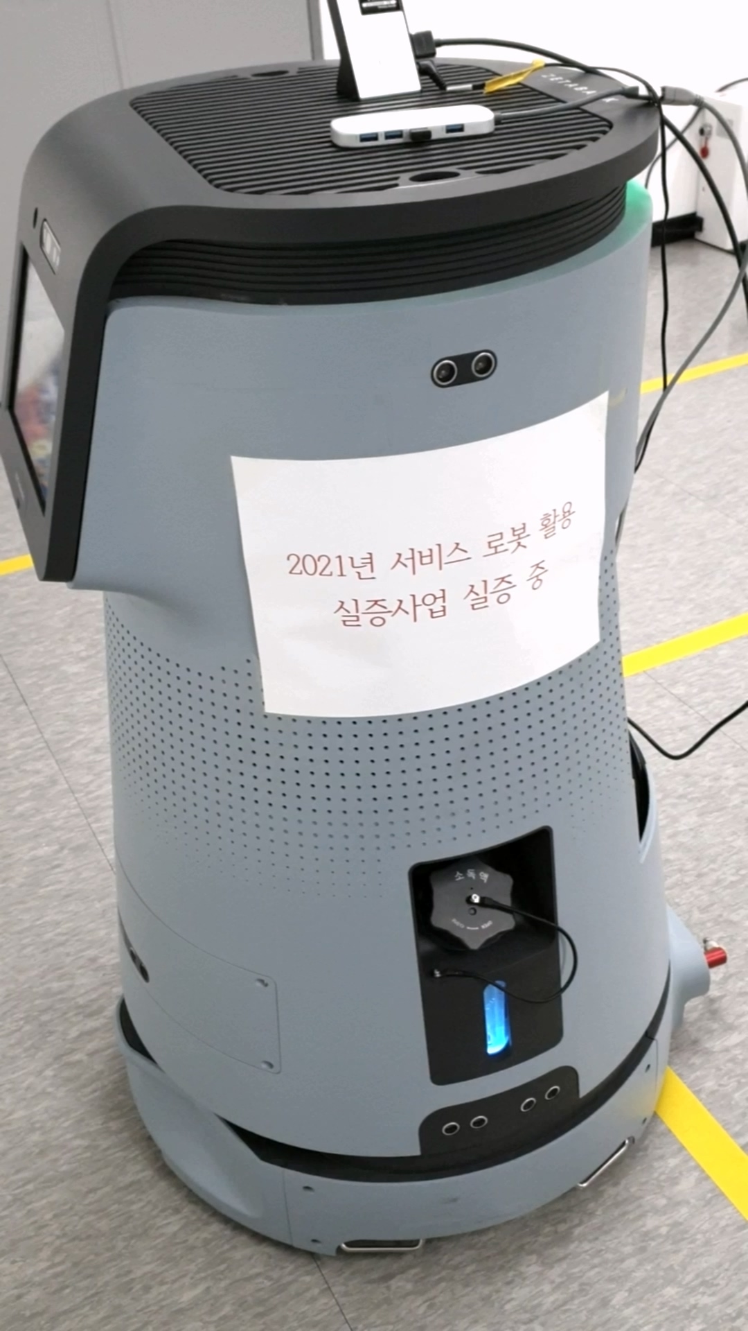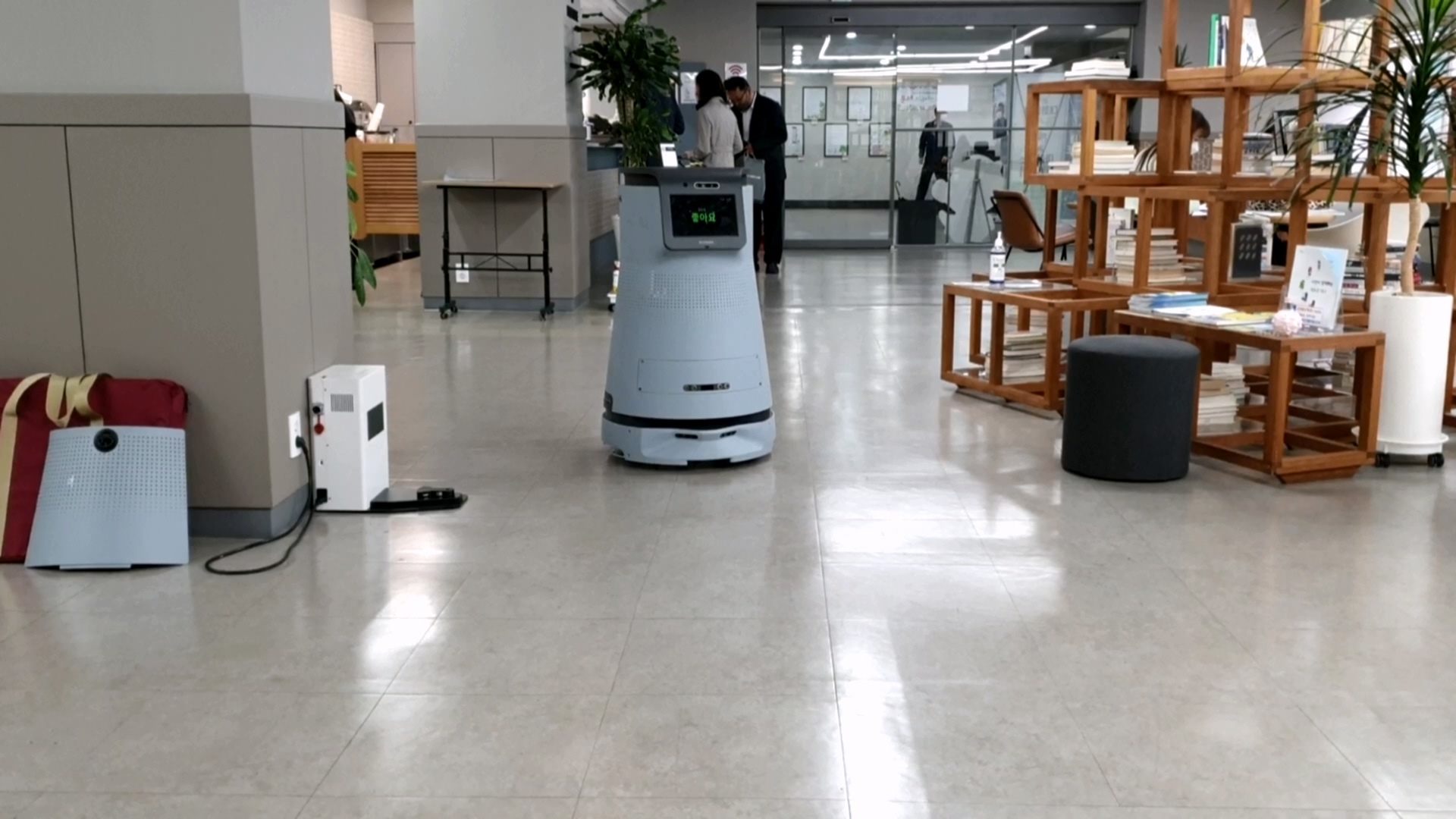 방역로봇을 광주에 있는 김대중컨벤션센터의 1층 로비에서 서비스를 수행하도록 작업을 진행했습니다.