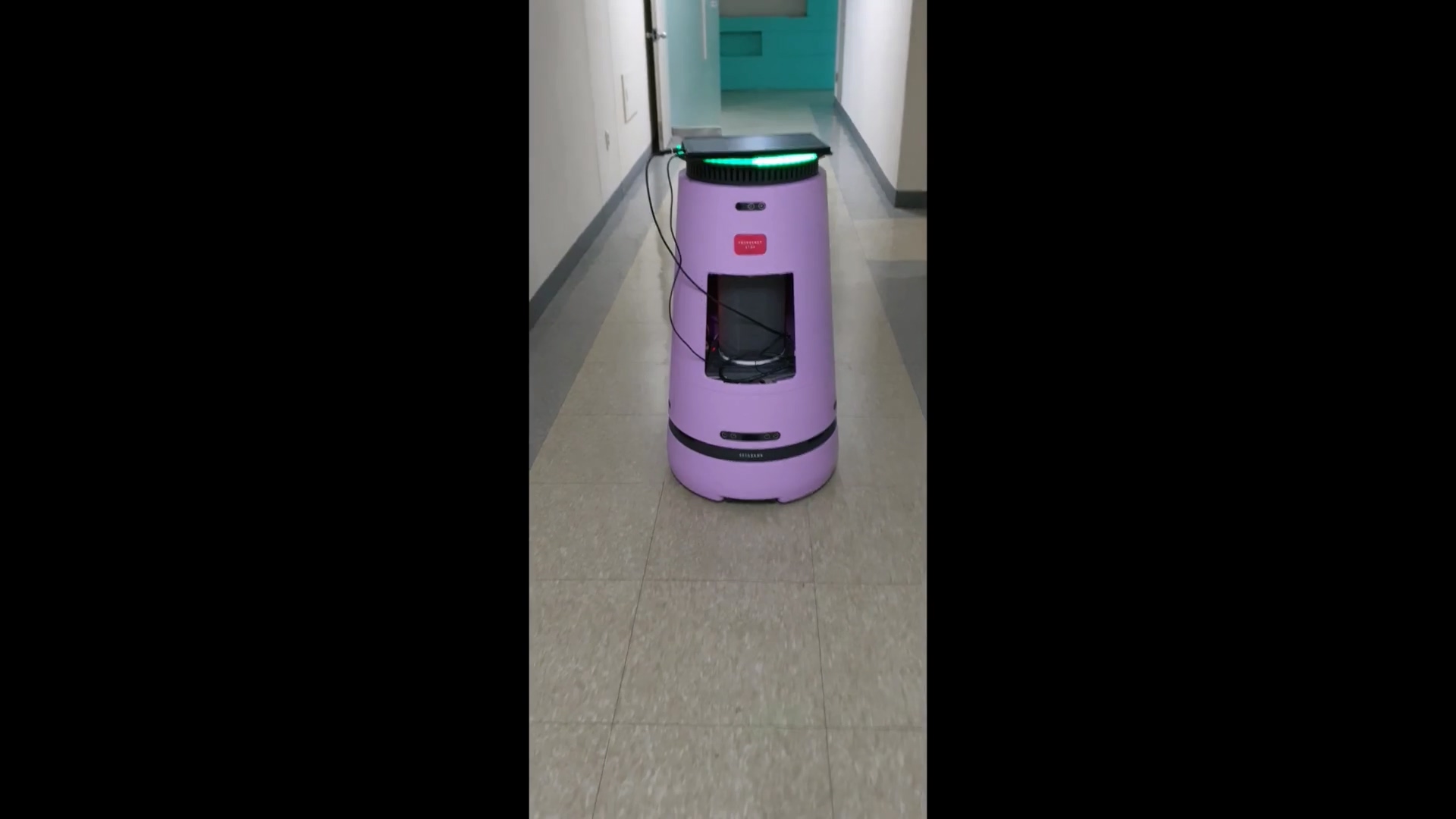로봇 좌우 측면의 초음파 센서는 충돌 방지 및 물체 감지를 담당하고, 전면 상단 우측의 온도 측정 카메라는 사람의 발열 상태를 비접촉 방식으로 측정합니다.
