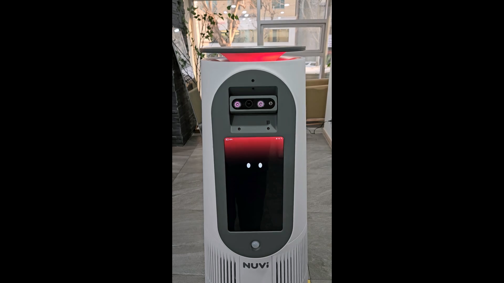 로봇은 시설 내 안내 및 지도 안내 기능을 제공하며, 회의실 운영 시 예약 기능도 지원합니다. 상단의 LCD 화면은 다양한 사용자 인터페이스를 제공해 누구나 쉽게 원하는 기능을 선택할 수 있습니다.