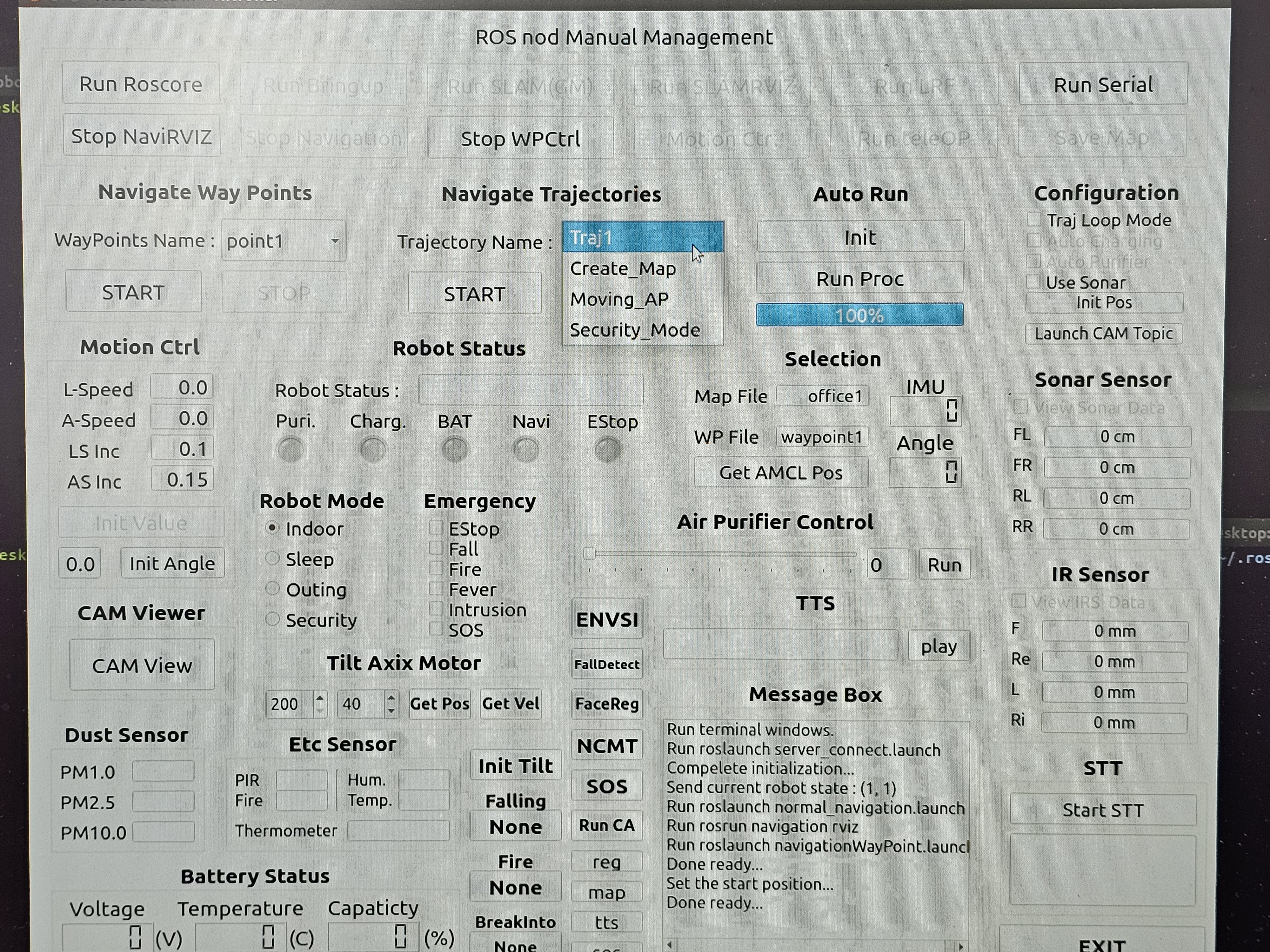 로봇은 사전에 설정된 경유점을 따라 자율주행하며 장애물을 회피하고, 배터리가 부족하면 자동으로 충전 도크로 복귀해 충전을 수행합니다.