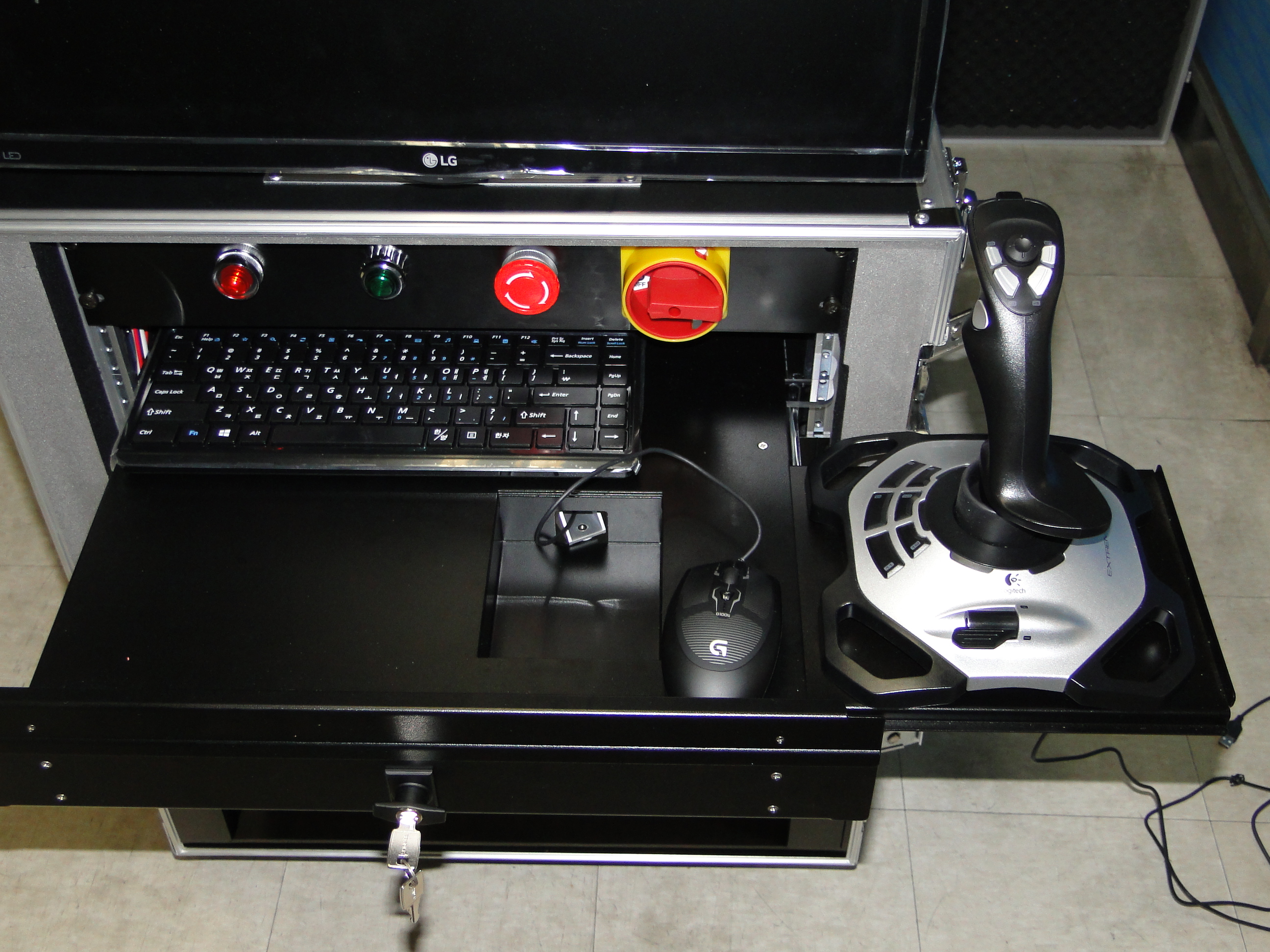 컨트롤러 및 전장 시스템은 견고한 케이스에 내장되며, 로봇 본체를 함께 수납할 수 있는 구조로 구성되었습니다. 로봇과 컨트롤러는 전원 및 카메라 신호 케이블로 연결되며, 5m와 15m 길이를 교체하여 사용할 수 있습니다. 컨트롤러에는 PC, 모니터, 키보드, 마우스, 조이스틱, 공유기, SMPS가 포함되어 현장 운용에 적합합니다.