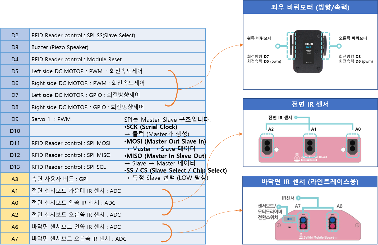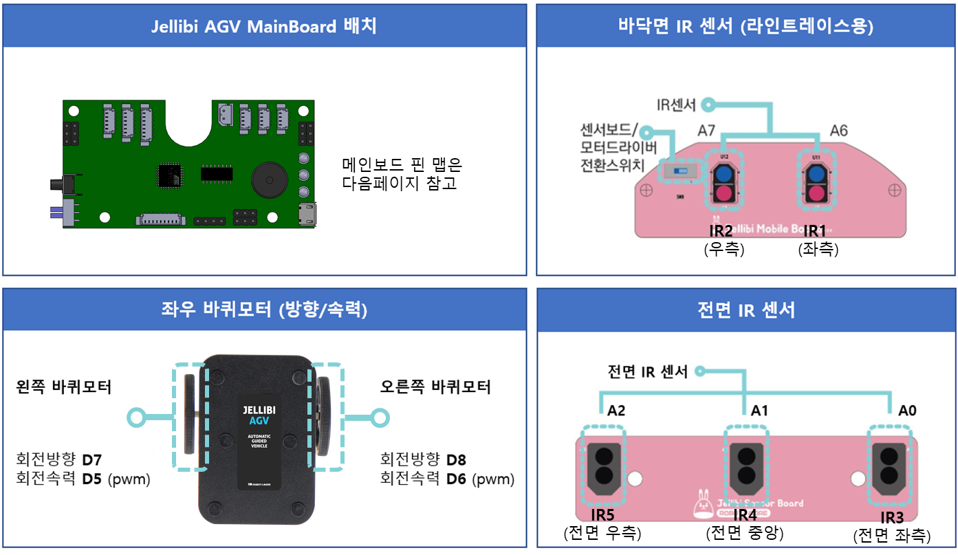 1. 젤리비 AGV 핀 맵 (바퀴 모터와 IR 센서)