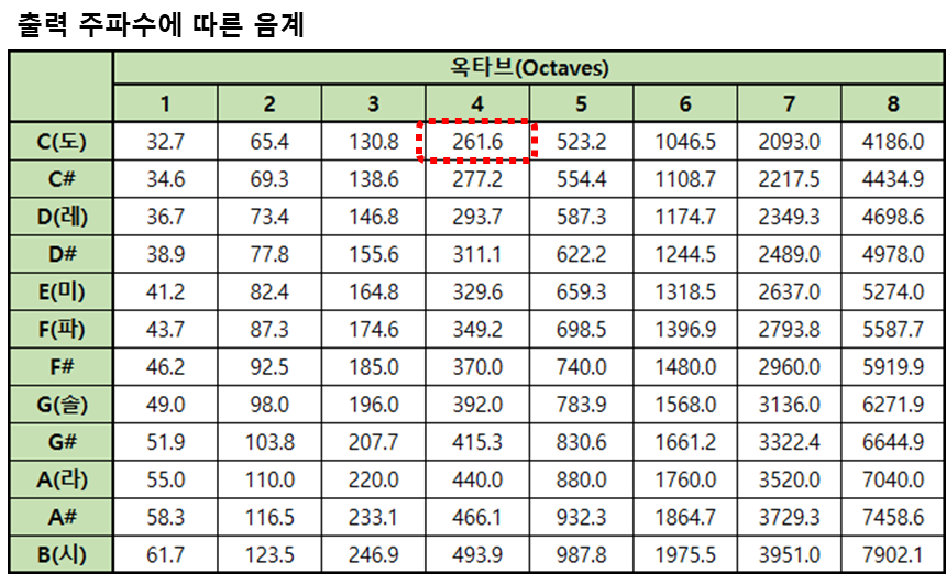 tone( pinBuzzer, 262 ); // 도(4옥타브 C)