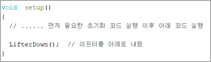 (2) setup() 함수에서 리프터를 내리는 함수 호출