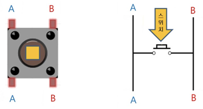 버튼을 누르면 스위치의 리드 부분이 서로 연결되고, 버튼을 누르지 않을 때는 리드 부분이 연결되지 않습니다. 스위치를 사용하면 회로의 특정 부분을 원하는 때에 마음대로 연결시키거나 연결을 끊을 수 있습니다.