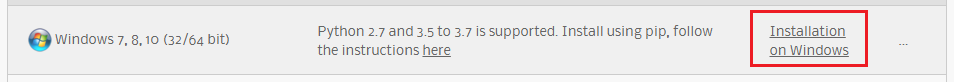 4. ANACONDA 환경에서 좀 더 자세한 설명을 참조할 경우 Installation on Windows 링크를 클릭한다.