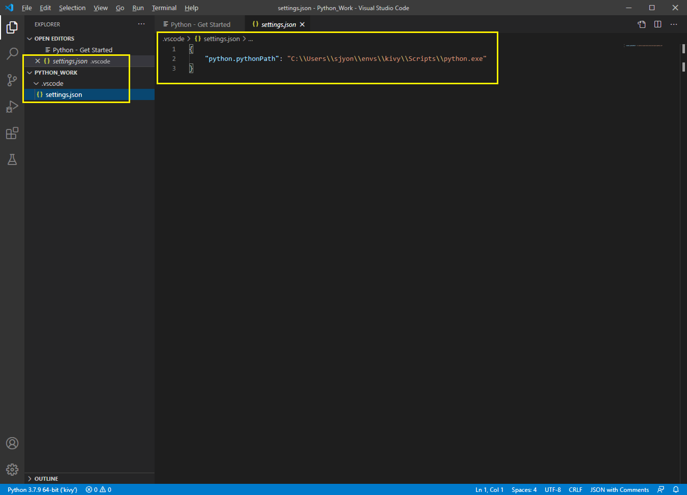 16. 설정이 완료되면 .vscode 폴더가 생성되고, setting.json 파일이 아래의 그림과 같이 생성된다.