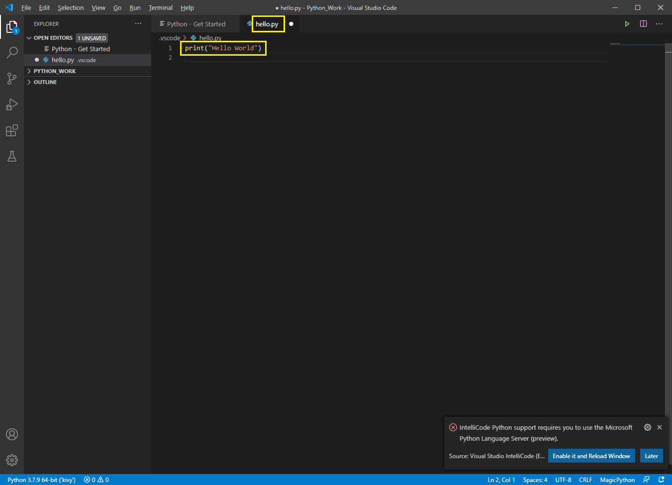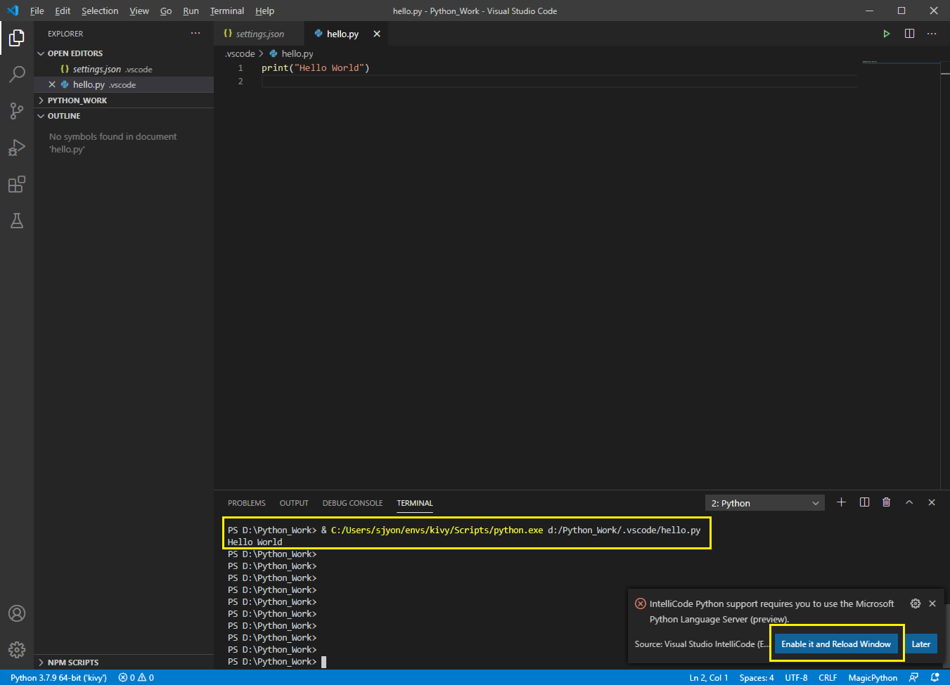 위와 같이 Enable it and Reload Window 버튼이 나타날 경우 버튼을 클릭한다.