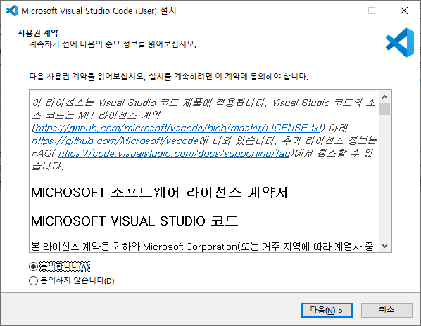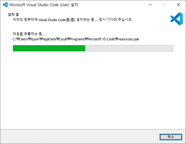 7. 정상적으로 설치가 완료될 경우 아래와 같이 Visual Studio Code가 실행된다.